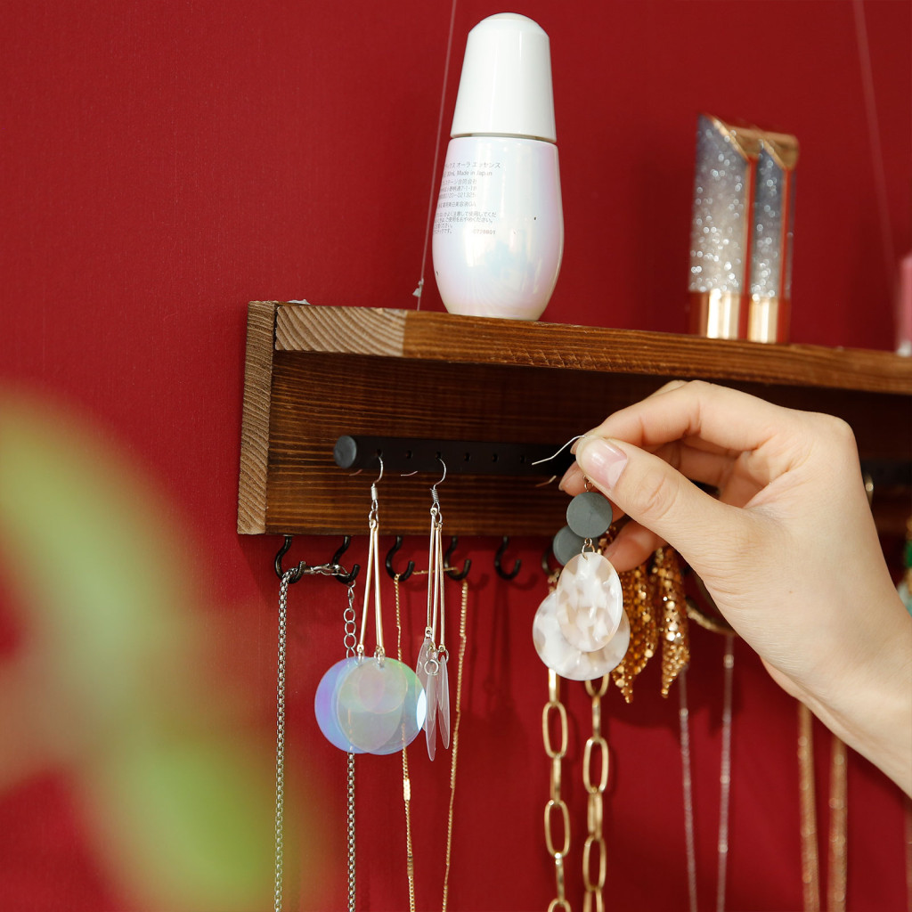 • 16 akasztó és 26 furat: Különböző típusú ékszerek rendszerezett tárolása
