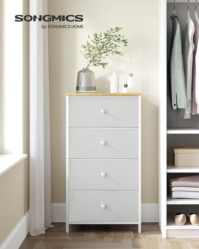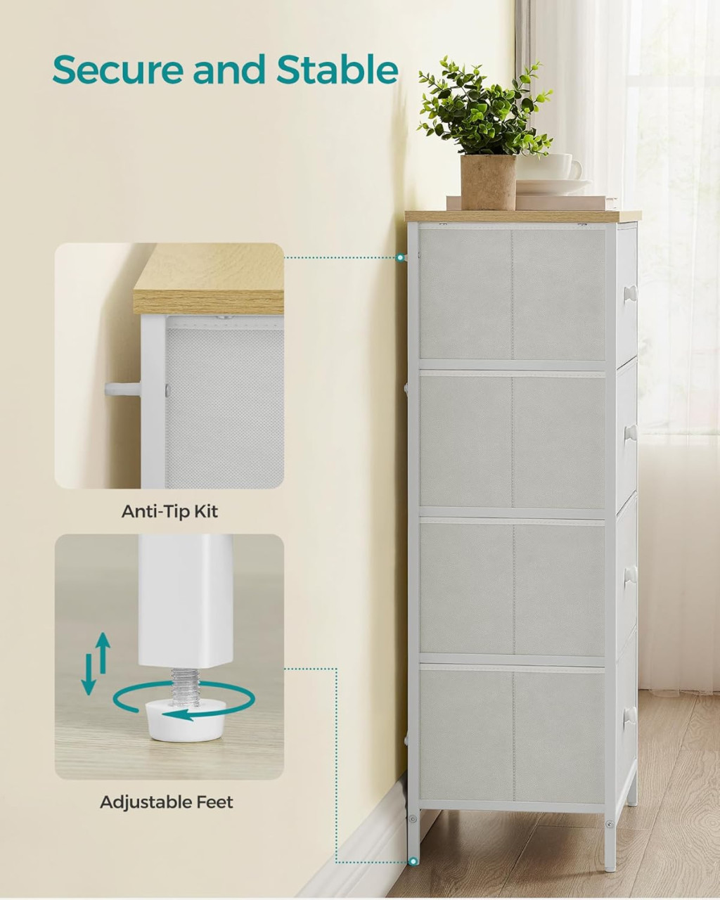 SONGMICS Slim Komód 4 Textil Fiókkal Fehér-Tölgy
