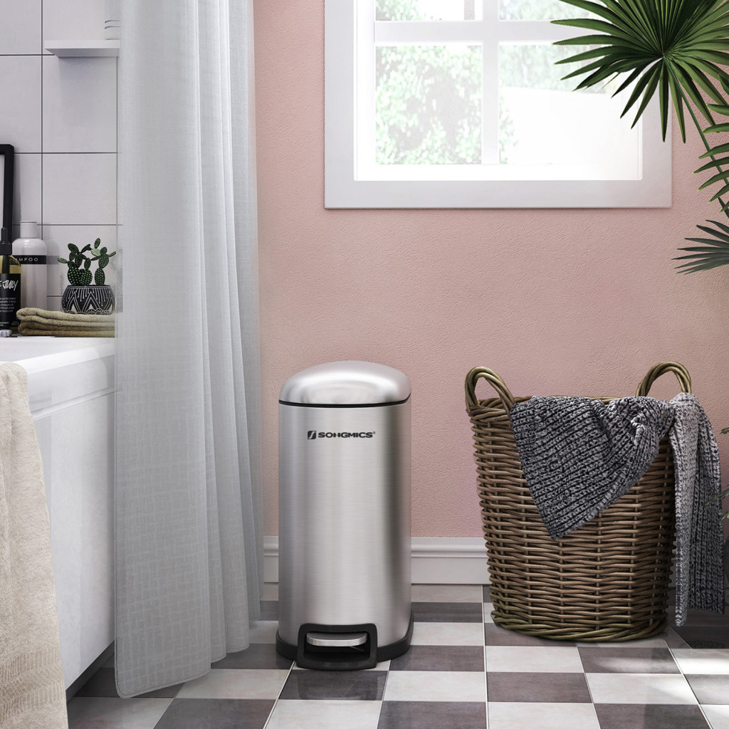 SONGMICS Slim Pedálos Szemetes 10L Acél Ezüst Lassú Záródású