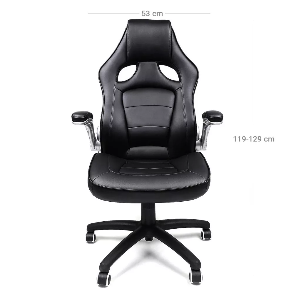 SONGMICS Sport Ergonomikus Irodai Szék Fekete Műbőr Állítható Karfával