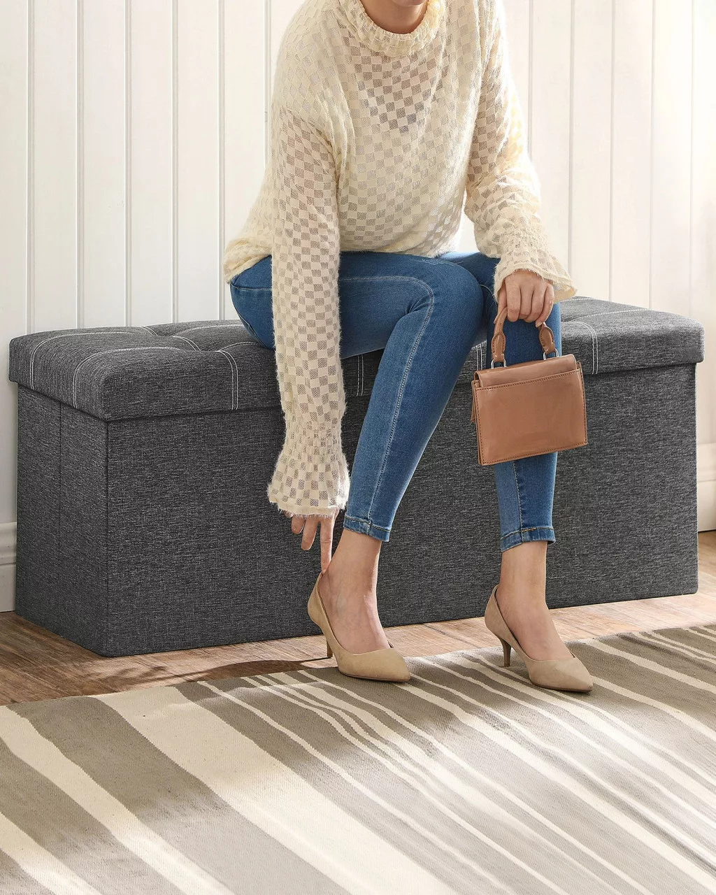 A masszív MDF szerkezetnek köszönhetően rendkívül stabil és tartós, használható ülőpadként az előszobában, tárolóként a hálószobában vagy akár dohányzóasztalként a nappaliban. Az összecsukható kialakítás pedig lehetővé teszi a helytakarékos tárolást, amikor éppen nincs használatban.