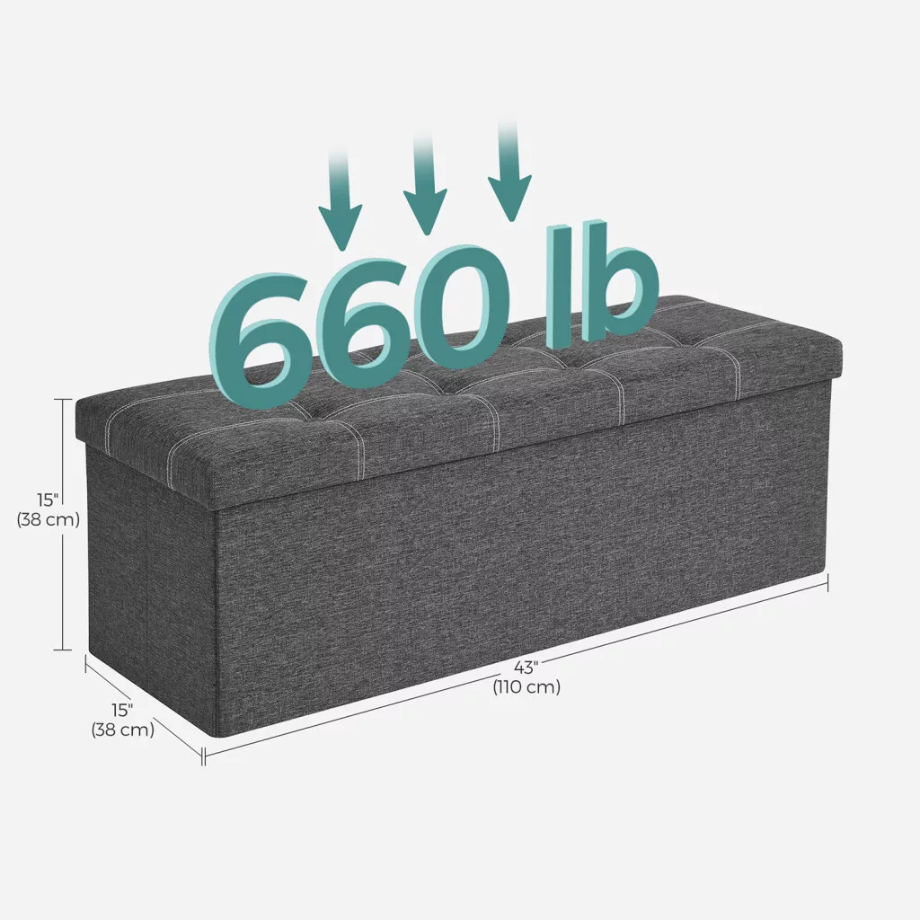 SONGMICS Tárolópad Összecsukható Ülőke Sötétszürke Vászon 110 cm