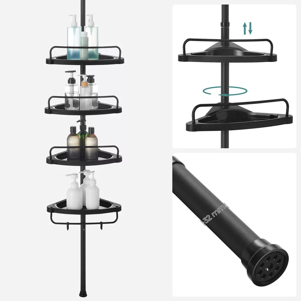SONGMICS Teleszkópos Fürdőszobai Sarokpolc Rendszer Fekete