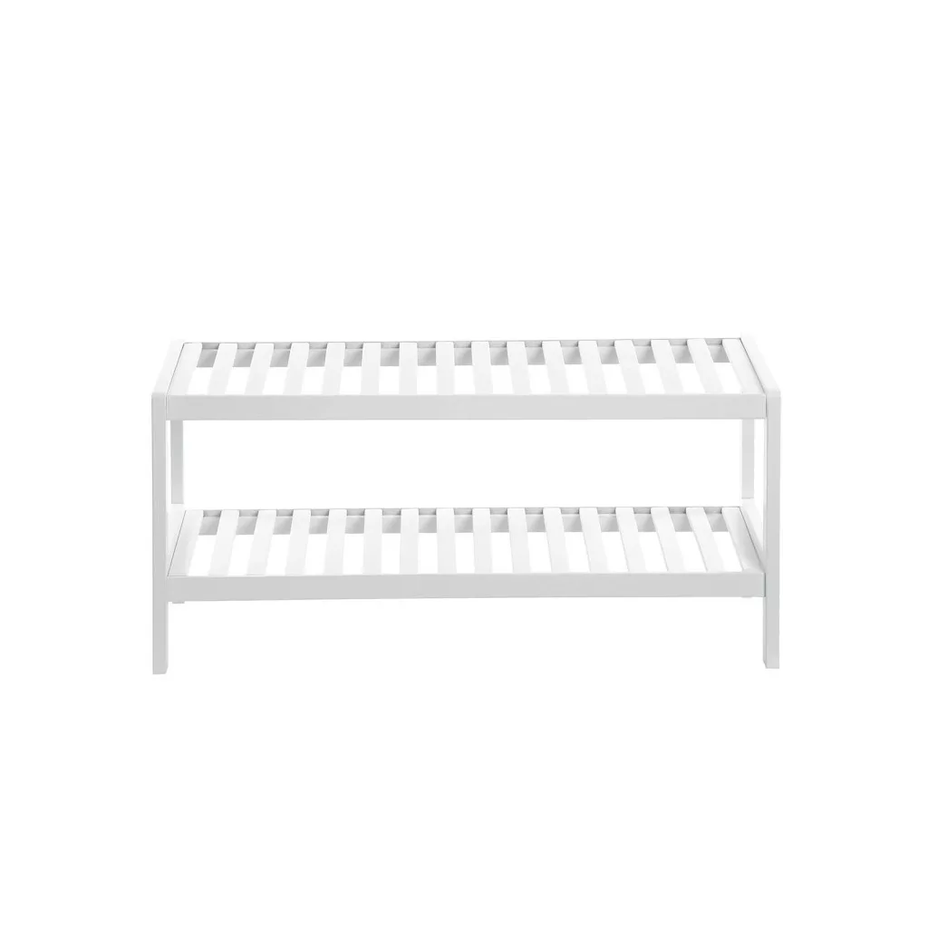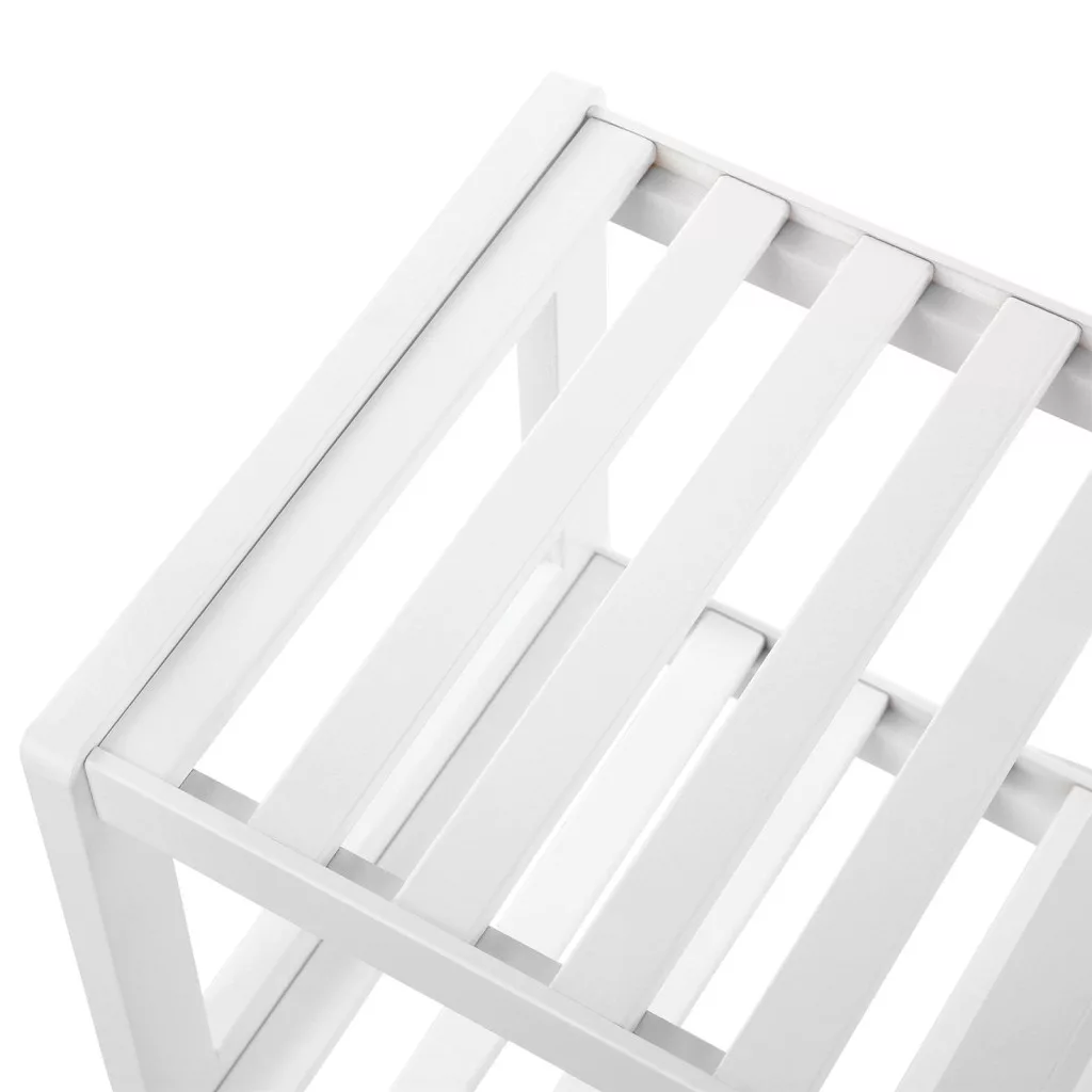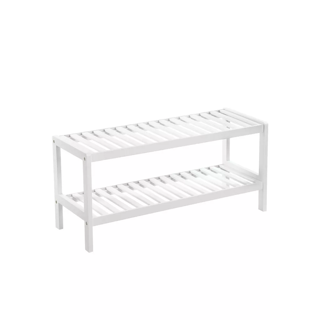 Elegáns, fehér bambusz cipőtartó állvány, amely tökéletes megoldást nyújt cipői rendezett tárolására, miközben stílusos kiegészítőként szolgál otthonában.
