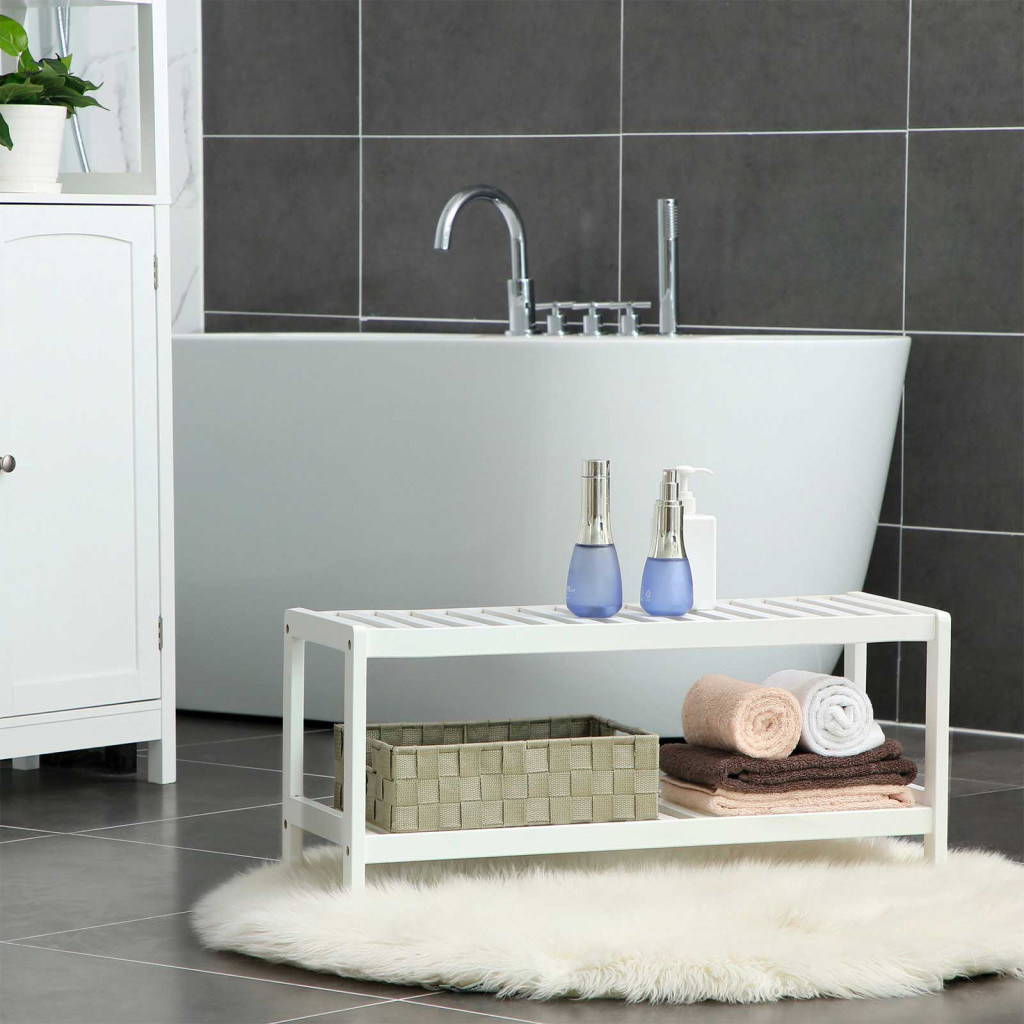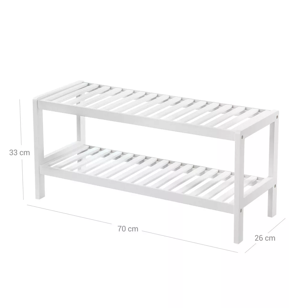 SONGMICS Természetes Bambusz Kétszintes Cipőtartó Állvány Fehér