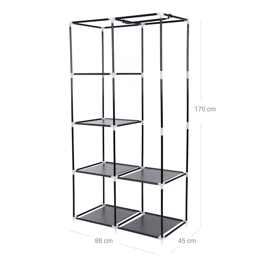 SONGMICS Textil Ruhásszekrény Fekete 2 Akasztórúddal és 6 Polccal