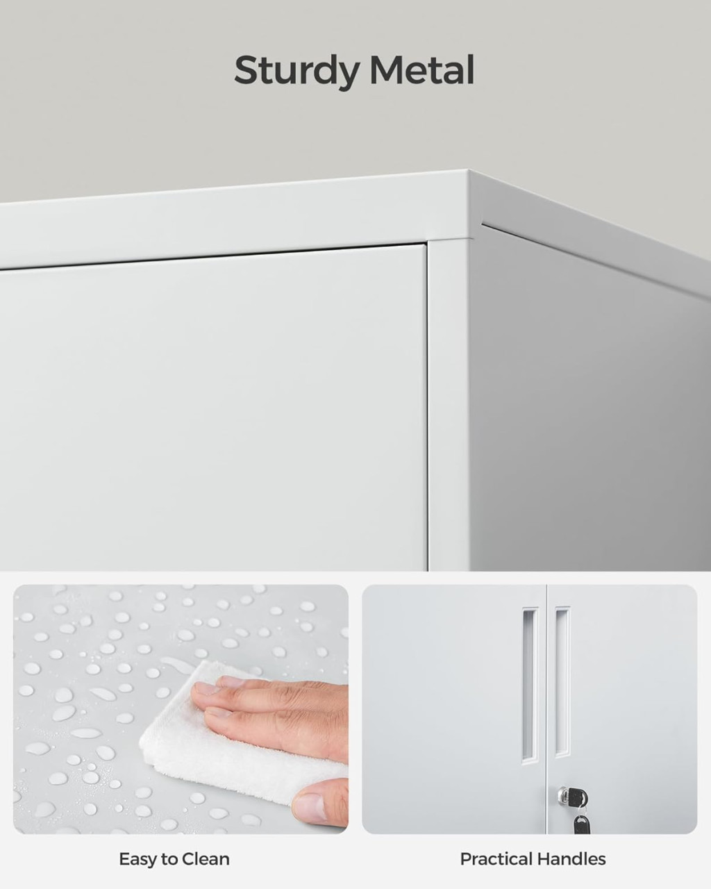 SONGMICS Többcélú Acél Tárolószekrény Zárható Ajtókkal Szürke