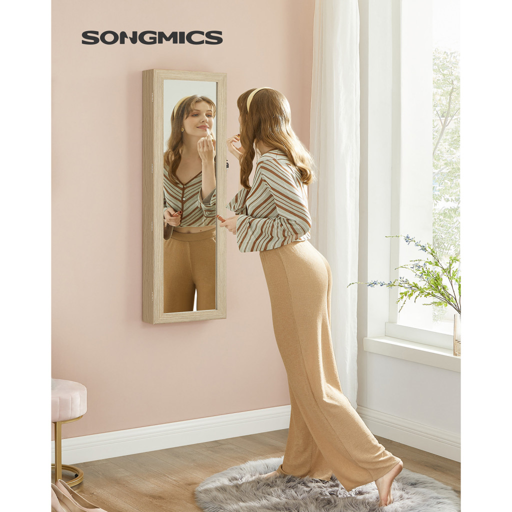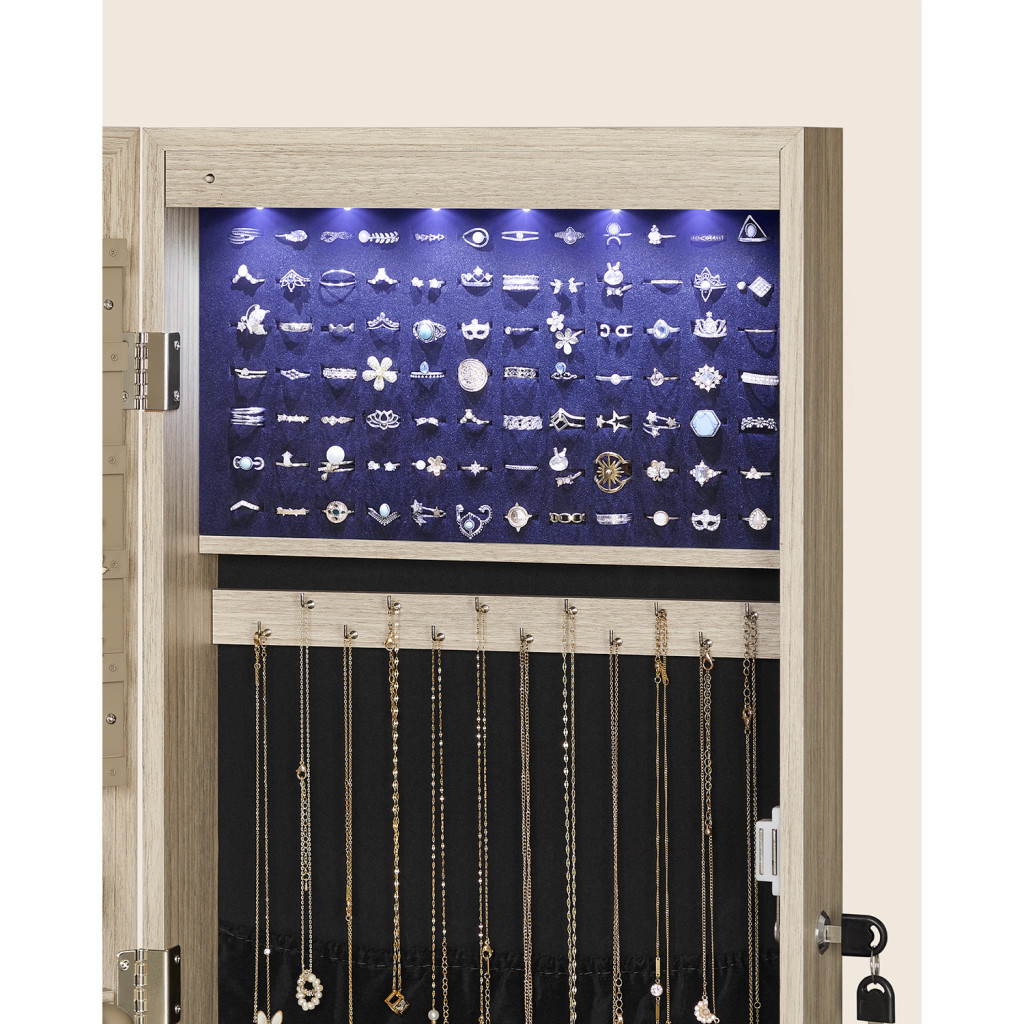 SONGMICS Tölgy Zárható Ékszertároló Tükrös Szekrény Többrekeszes Ajtóra Szerelhető