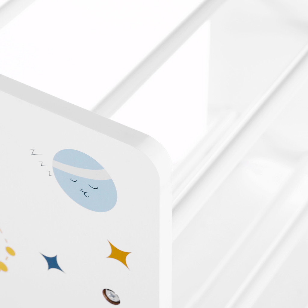 • Űrhajós dizájn: A bolygók és csillagok mintázat motiválja a gyerekeket a rendrakásra