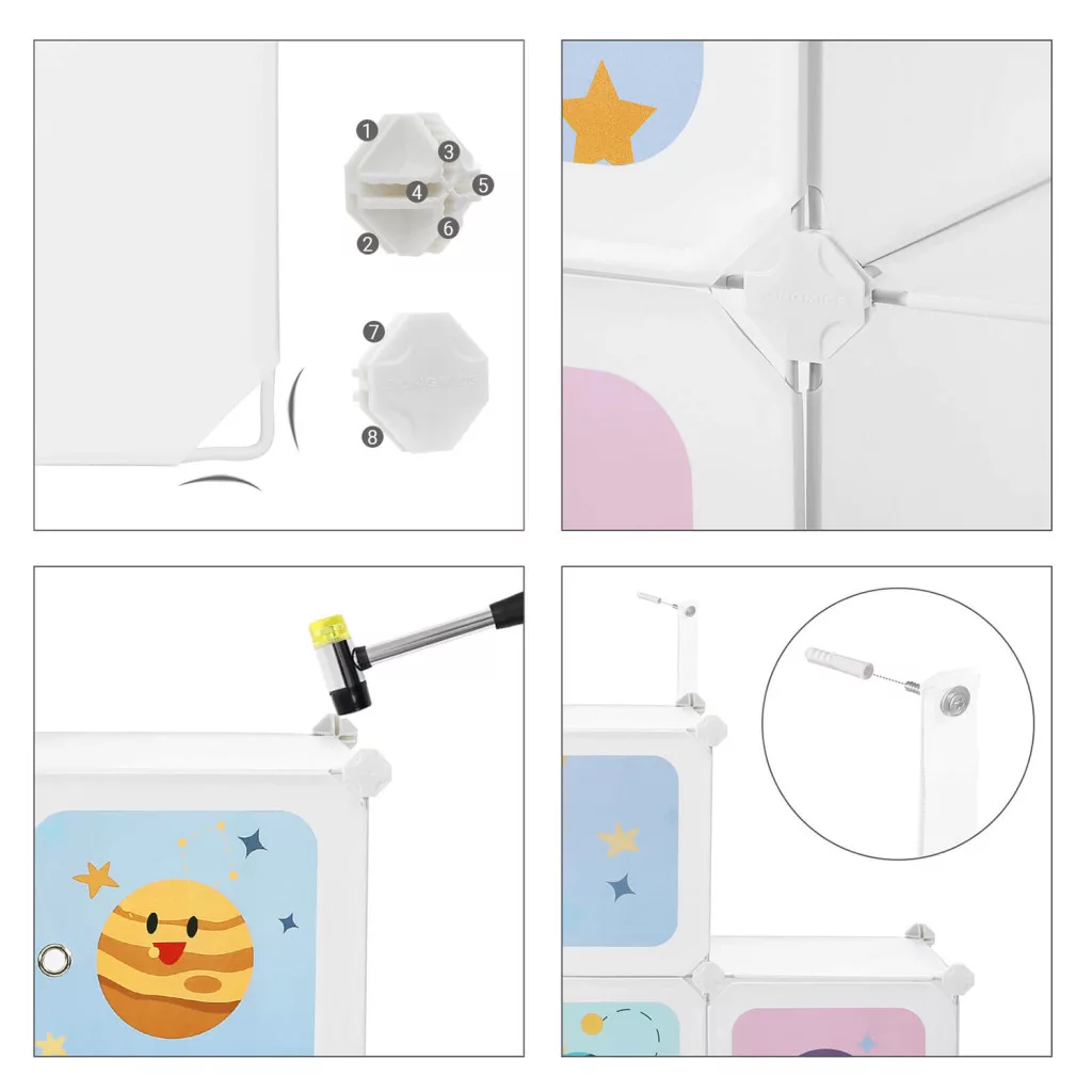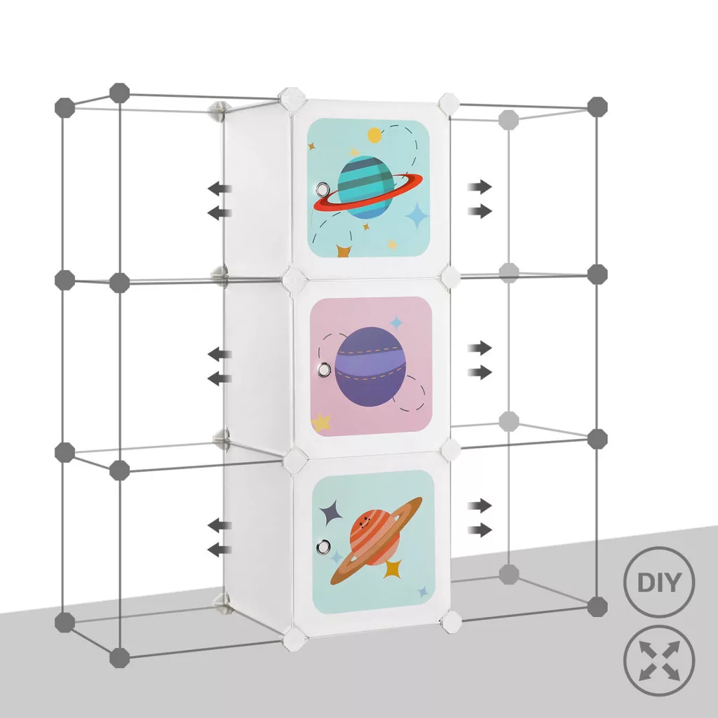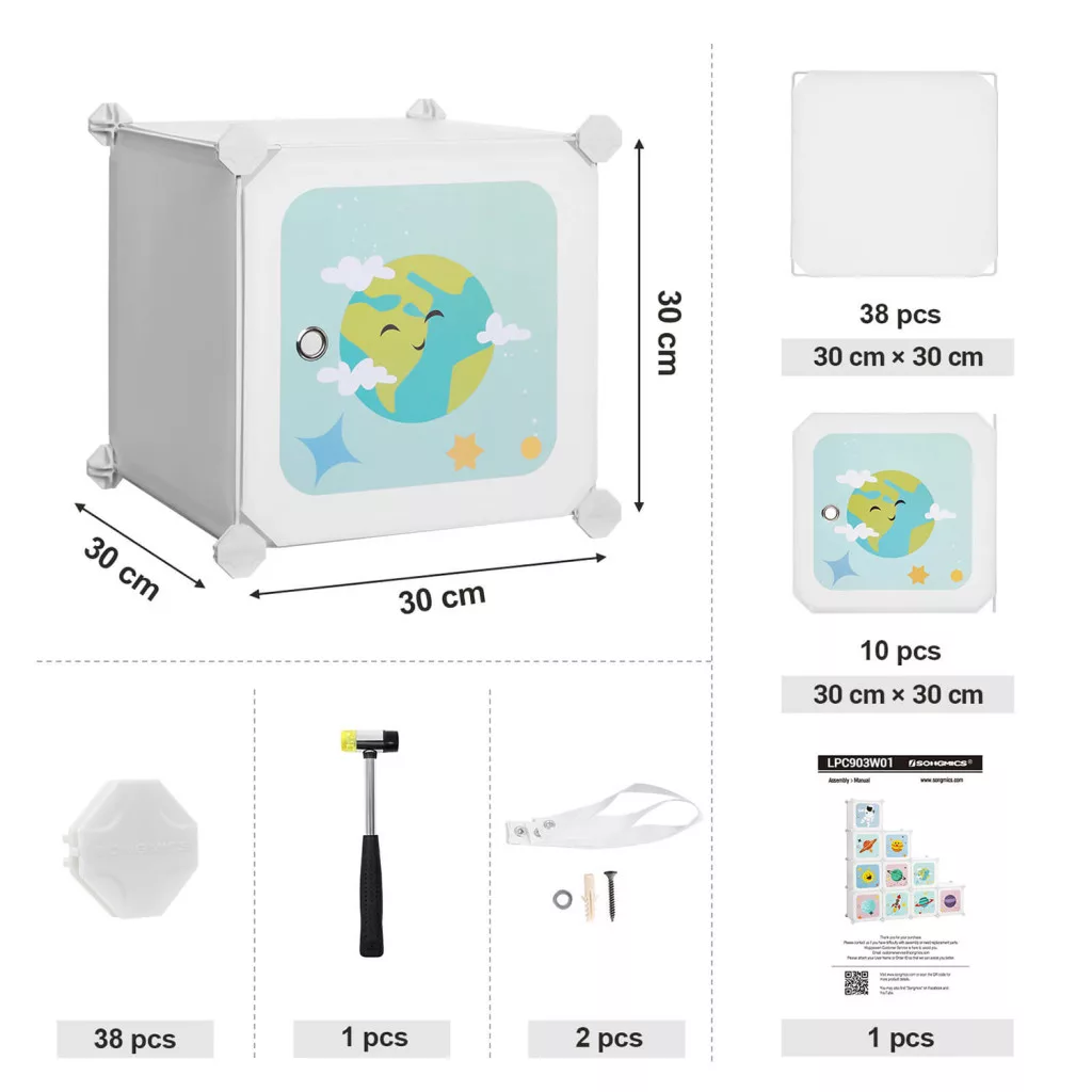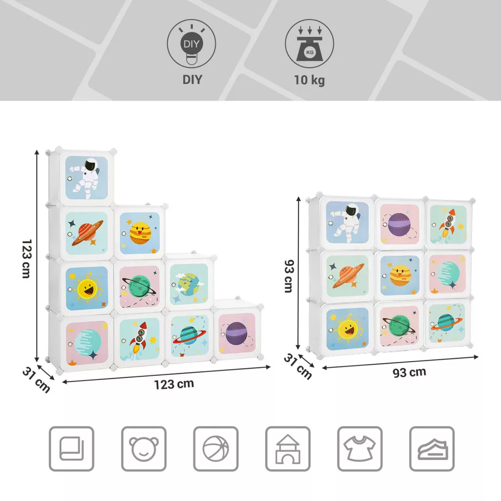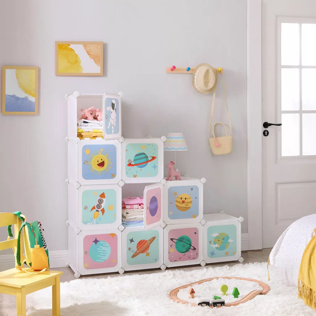 SONGMICS Űrhajós Gyerekszoba Tárolószekrény 10 Kockával Fehér