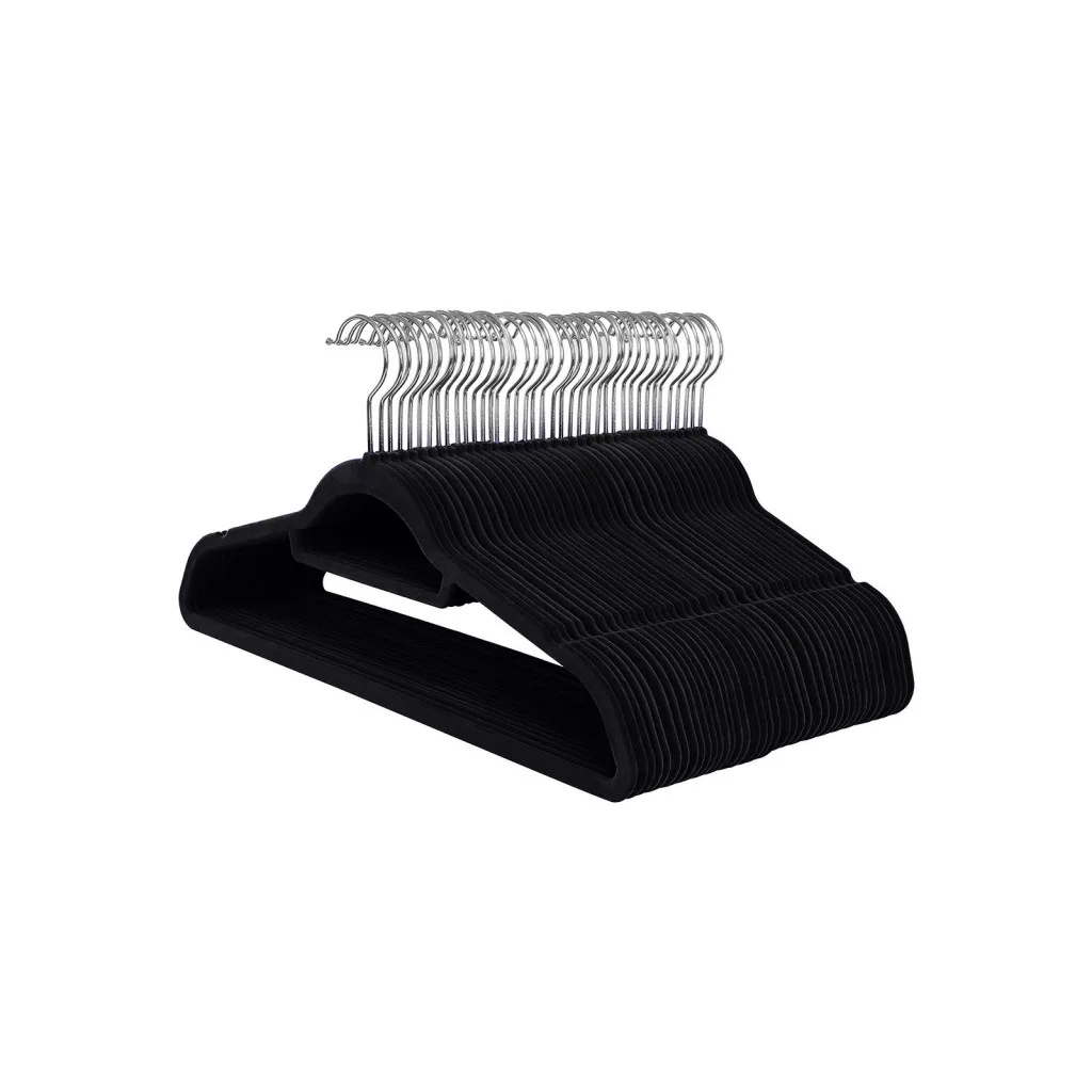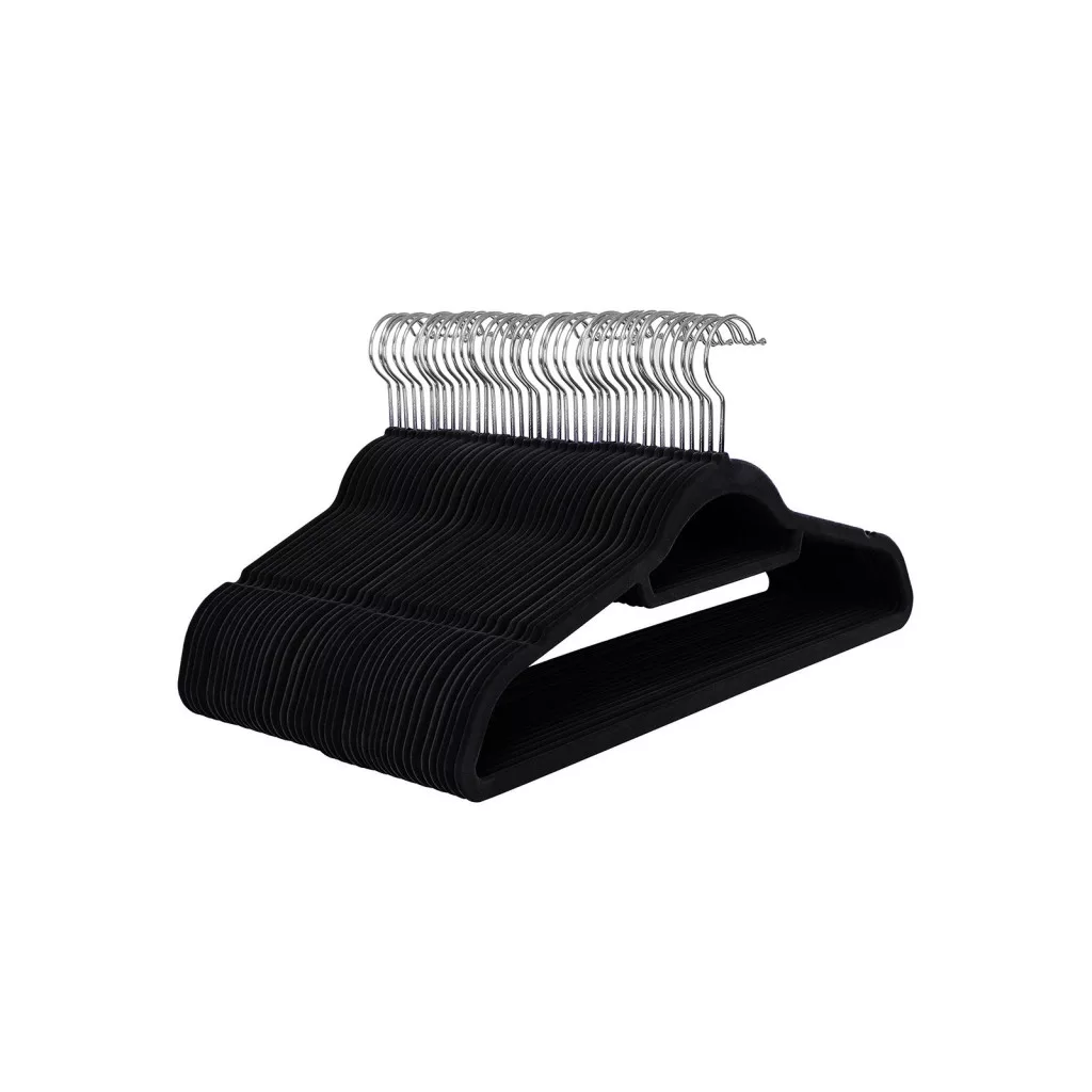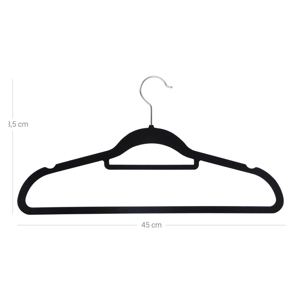 SONGMICS Vékony Bársony Ruhaakasztó Szett Nyakkendőtartóval 50 db Fekete