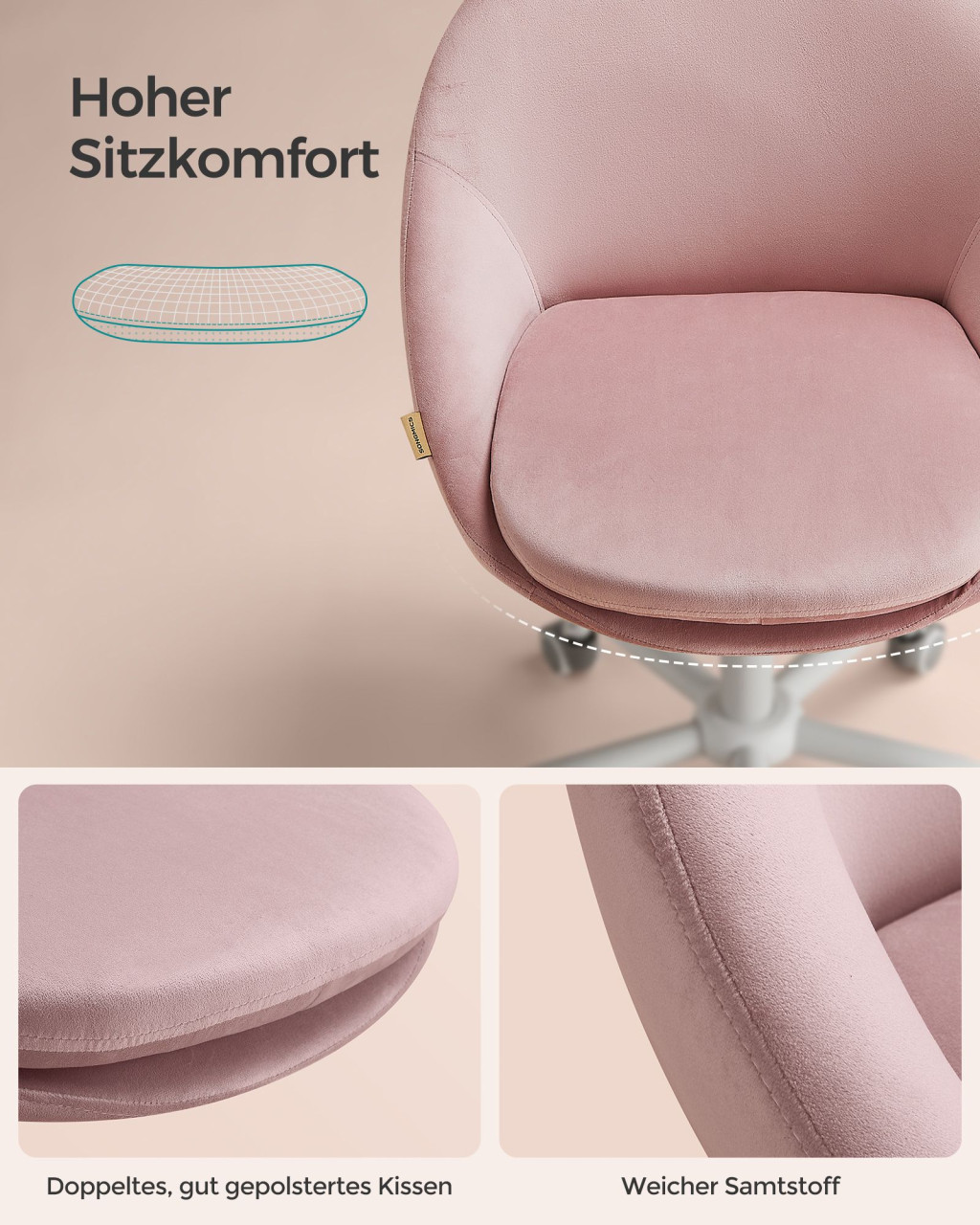 SONGMICS Velvet Forgószék Púderrózsaszín Íróasztali Szék Állítható Magasságú