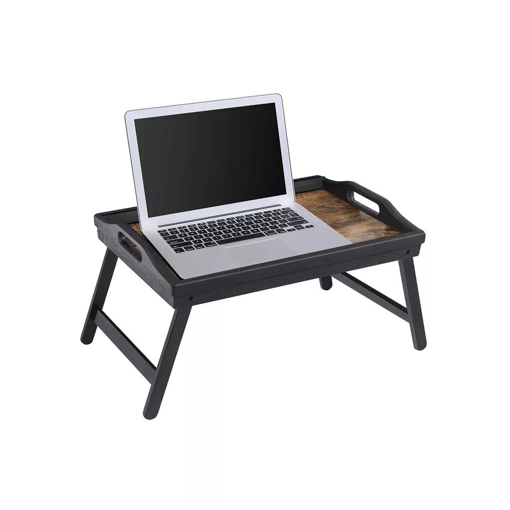 SONGMICS Vintage Bambusz Összecsukható Reggeliző Tálca Sötétbarna