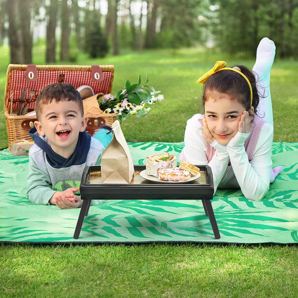 A bambuszból és MDF-ből készült tálca nem csak strapabíró, de környezetbarát is. Az összecsukható lábaknak és a praktikus oldalsó fogantyúknak köszönhetően könnyen hordozható és tárolható.