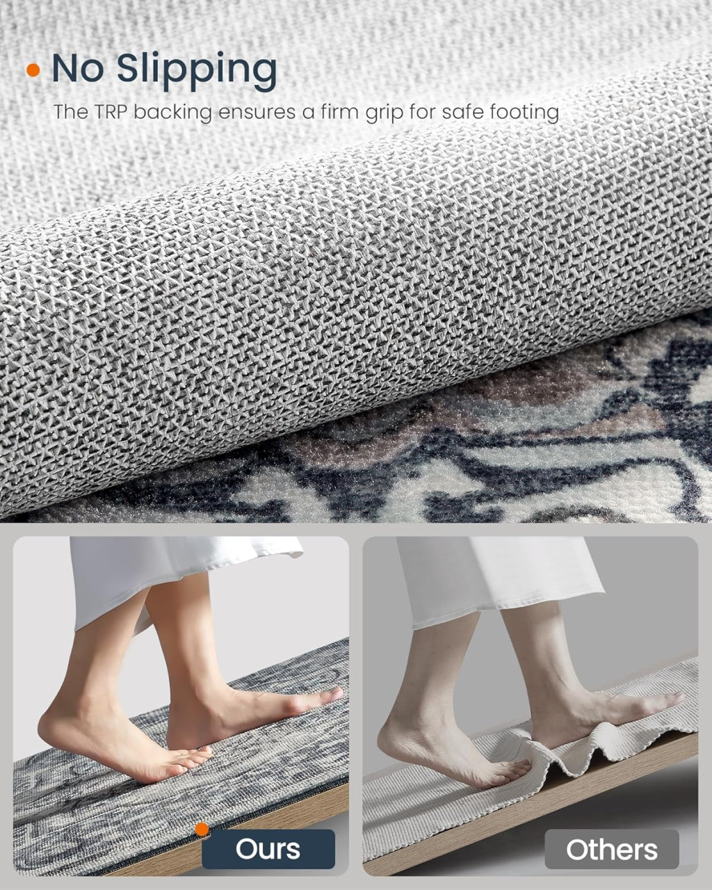 SONGMICS Vintage Szőnyeg Galambszürke Csúszásmentes Mosható