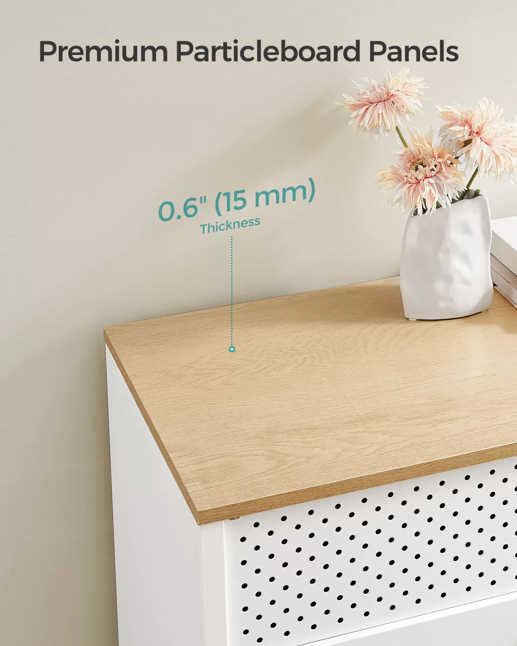 • Perforált ajtódizájn: A dekoratív perforált minta nemcsak esztétikus megjelenést biztosít, hanem kiváló szellőzést is, így a tárolt tárgyak frissek maradnak, és lehetőség van horgok felszerelésére személyes tárgyak akasztásához