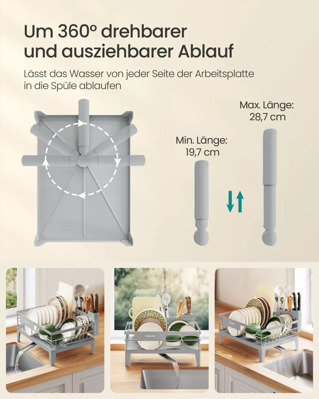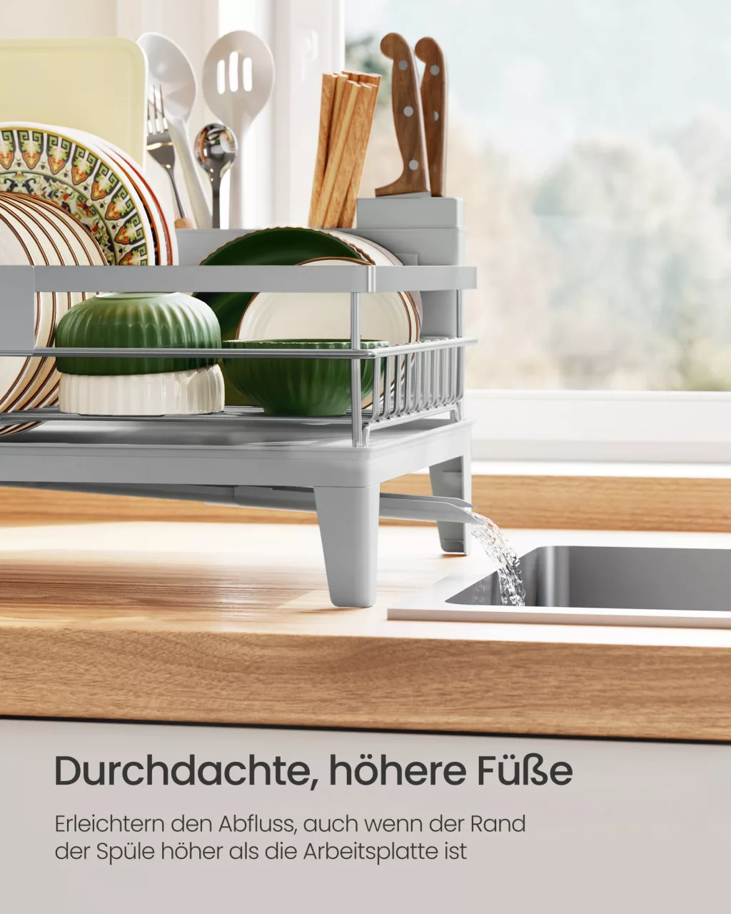 SONGMICS edényszárító állvány acél galamb szürke 360° forgatható csőrrel