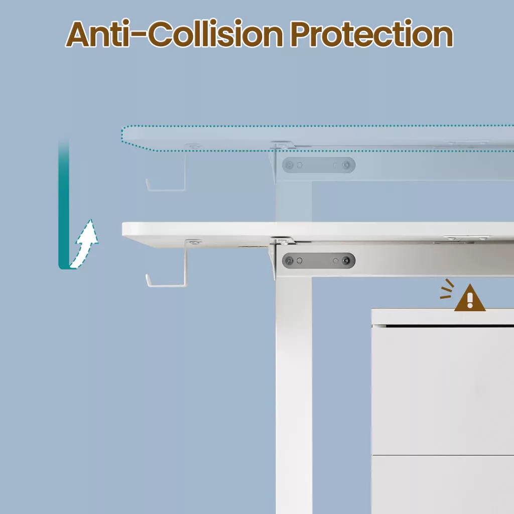 • Biztonsági ütközésérzékelő: Az automatikus érzékelő megállítja az asztalt, ha akadályba ütközik, megvédve ezzel eszközeit és a bútort