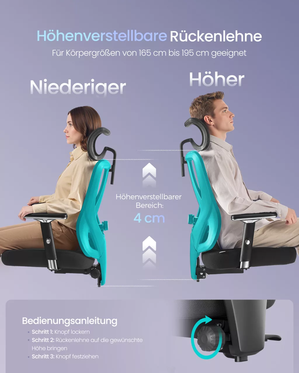 • Egészségmegőrző ergonómia: A gerinc természetes ívét követő kialakítás és az állítható deréktámasz egyenletesen osztja el a nyomást, megelőzve a hát- és derékfájdalmat
