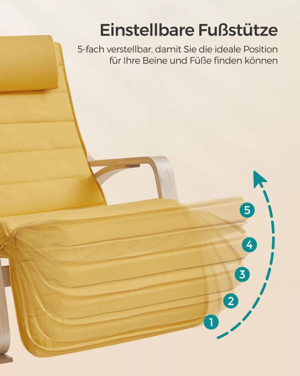 SONGMICS hintaszék nyírfa karfával 5 fokozatban állítható lábtartóval pasztell sárga