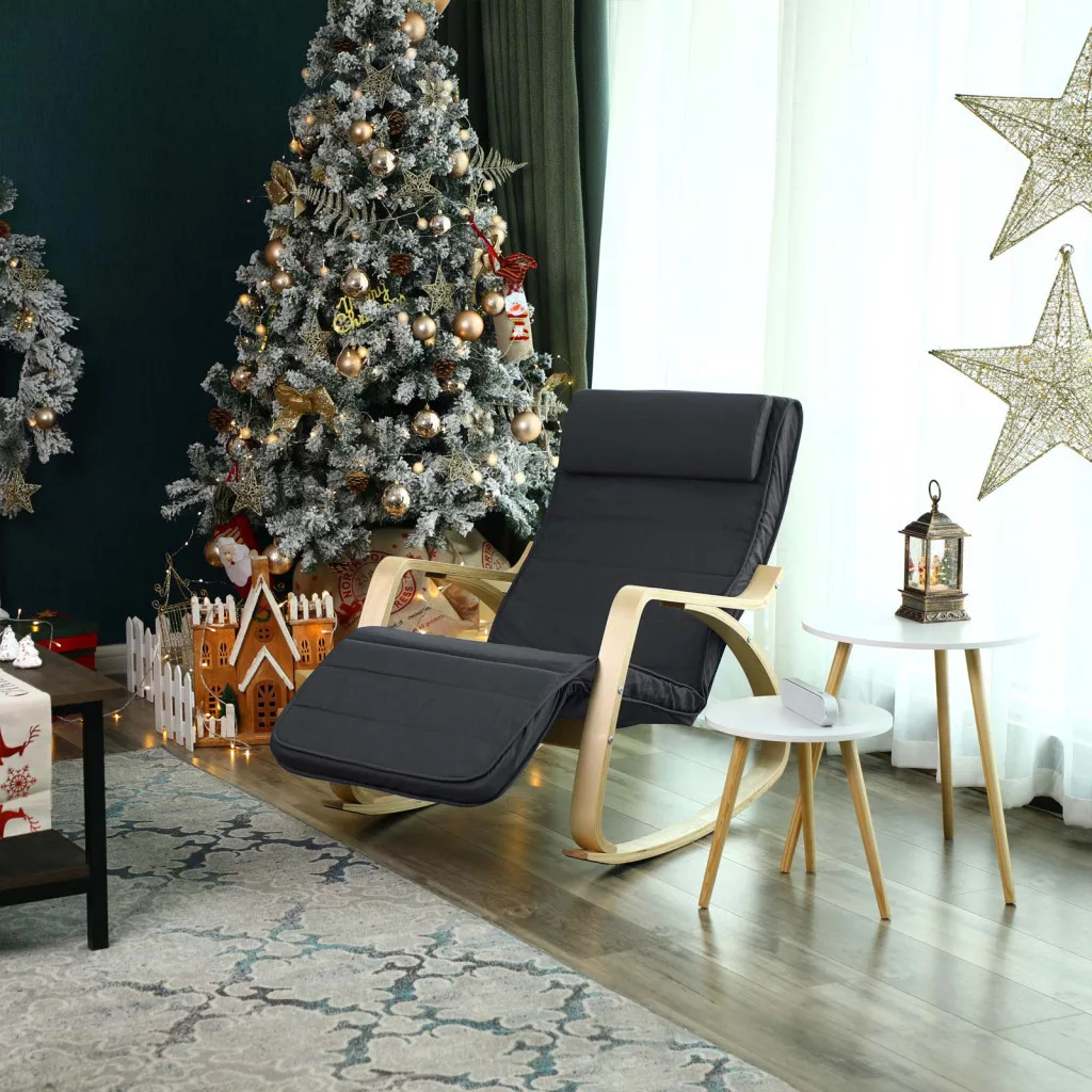 SONGMICS hintaszék nyírfa vázzal állítható lábtartóval szürke
