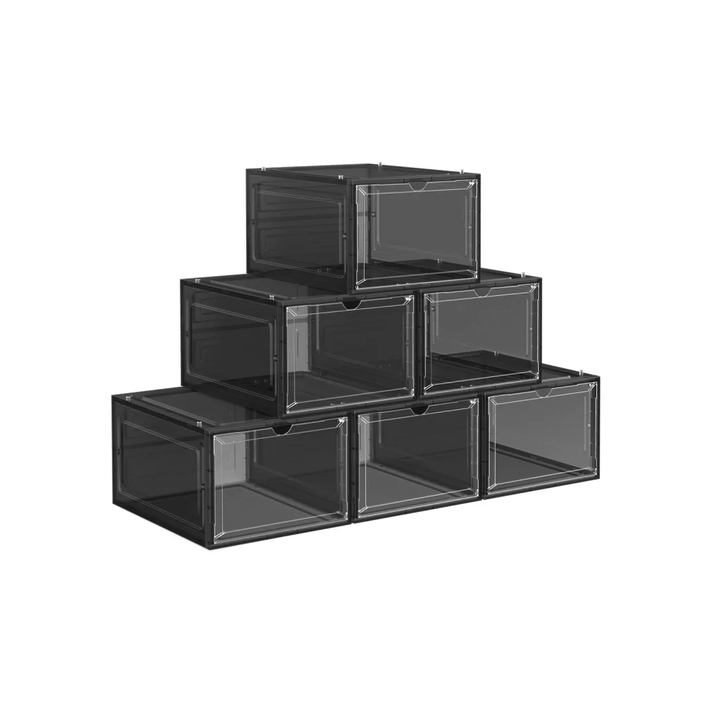 SONGMICS műanyag cipőtároló doboz átlátszó ajtóval fekete 6 db-os készlet