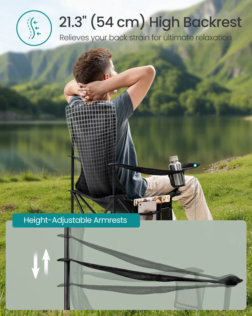 Élvezze a maximális kényelmet a szabadban ezzel a 2 darabos SONGMICS kempingszék készlettel. A légáteresztő hálós háttámla, az állítható kartámaszok és a 150 kg teherbírás tökéletes választássá teszi minden szabadtéri tevékenységhez.