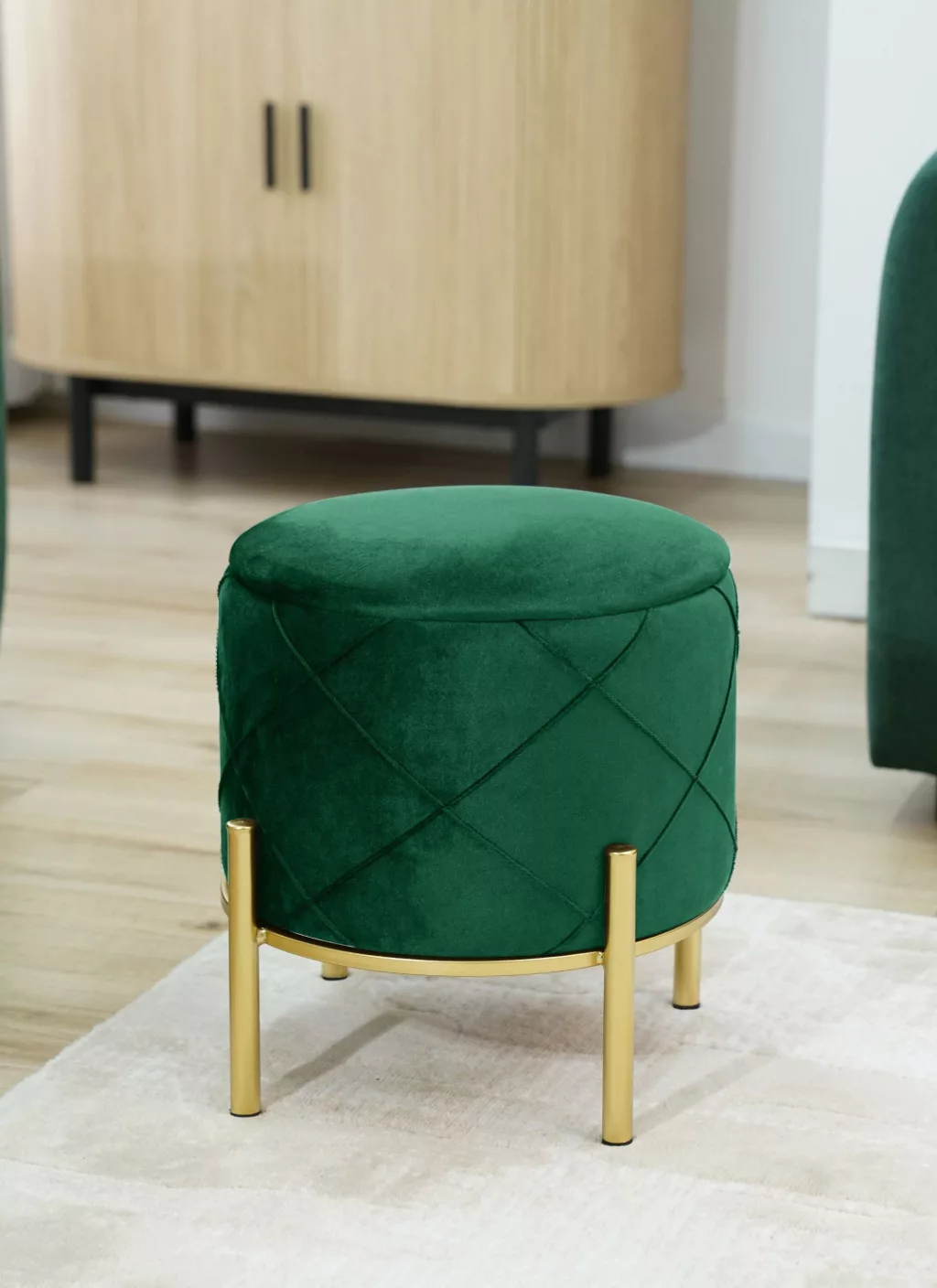 AKORD Savana Tárolós Puff Palackzöld Velúr Arany Lábakkal