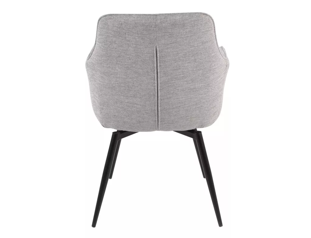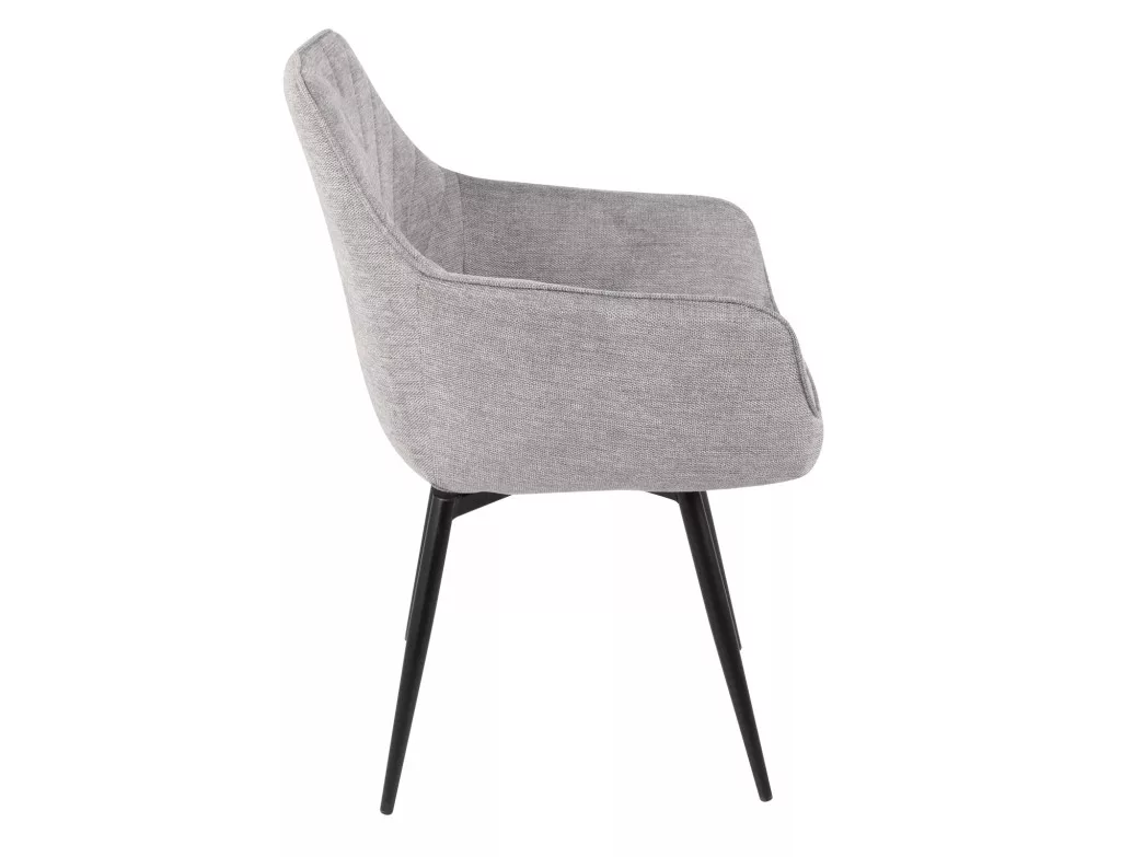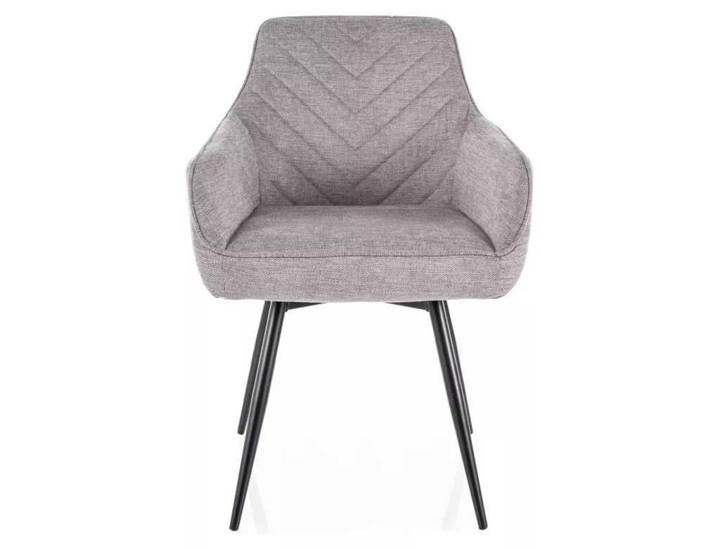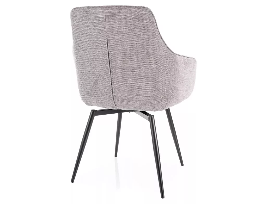 A szürke Brego szövet kárpit időtálló megjelenést kölcsönöz, míg a matt fekete fémlábak modern kontrasztot teremtenek. Az auto-return funkció biztosítja, hogy a szék mindig visszatérjen eredeti pozíciójába, így rendezett megjelenést biztosít az étkezőben.