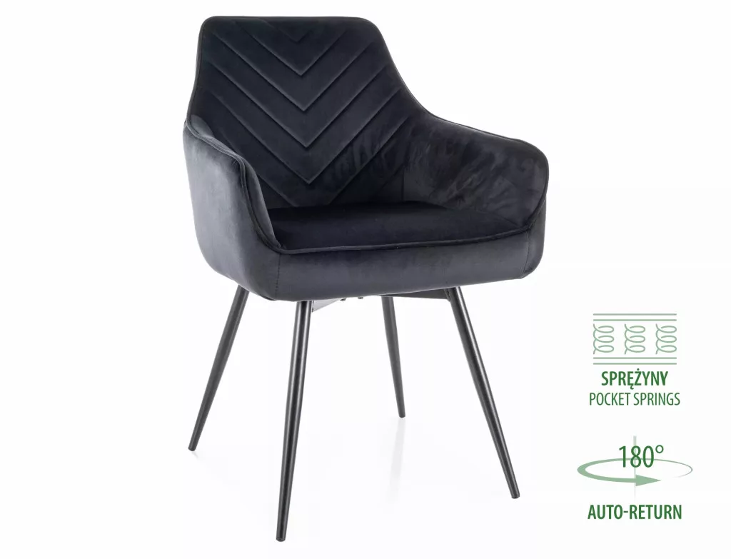 Servio Velvet Fekete Bársony Étkezőszék Automata Visszatérés Funkcióval