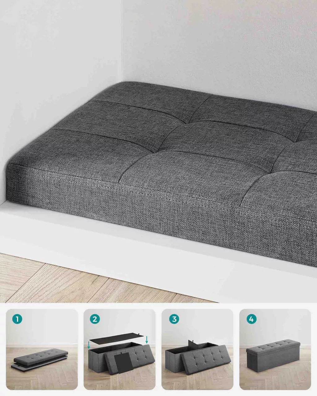 Songmics Tároló Pad Összecsukható Vászonhatású Sötétszürke 300 kg Teherbírás