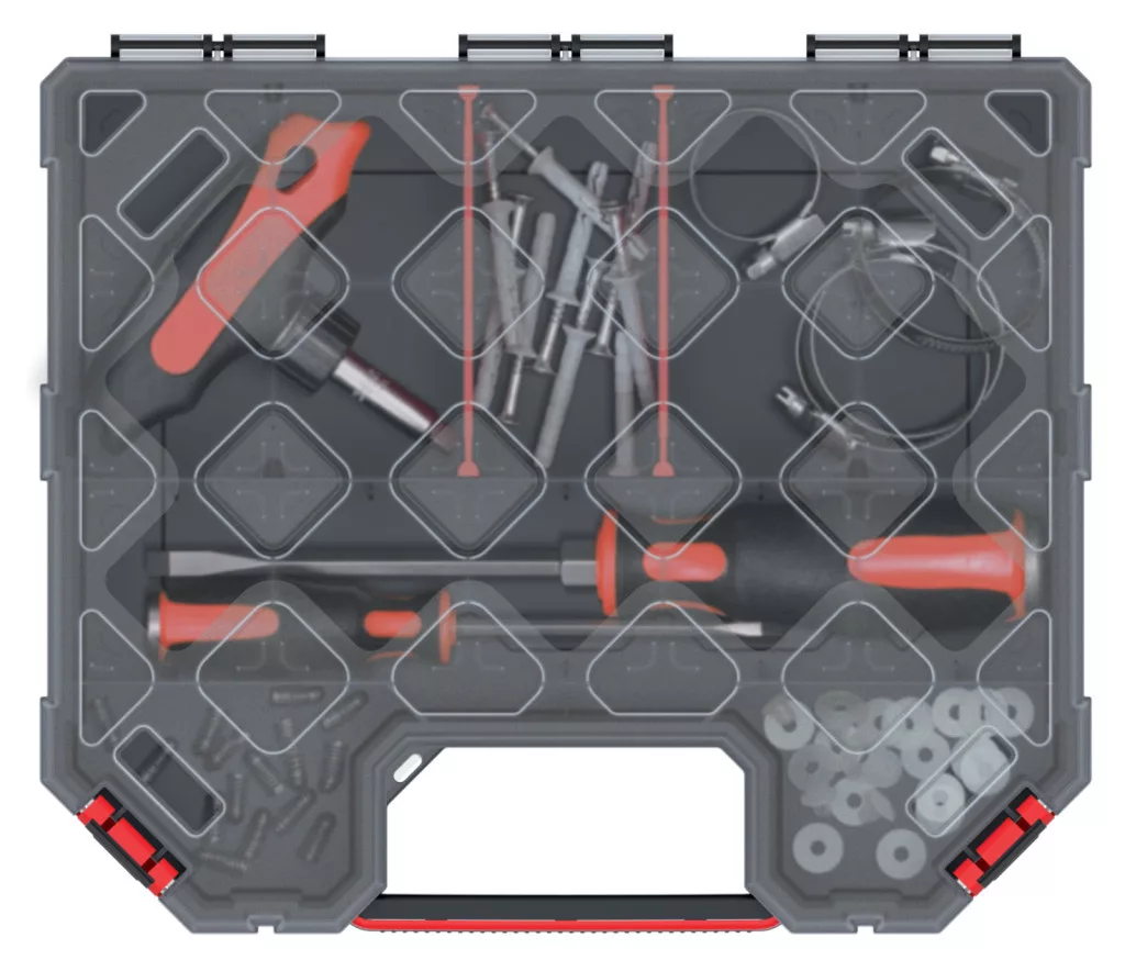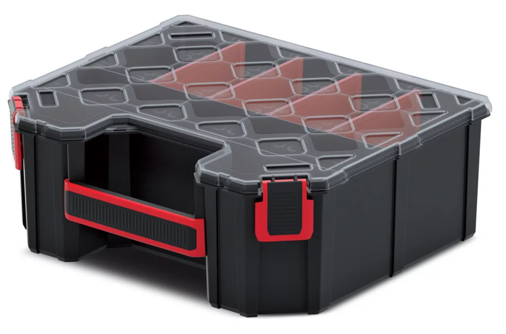 A Tager 30 magas szerszámrendező egy innovatív tárolási megoldás, amely ötvözi a praktikusságot és a tartósságot. Az átlátszó fedél azonnali rálátást biztosít a tartalomra, míg a négy kivehető rekesz lehetővé teszi a szerszámok és alkatrészek rugalmas rendszerezését.