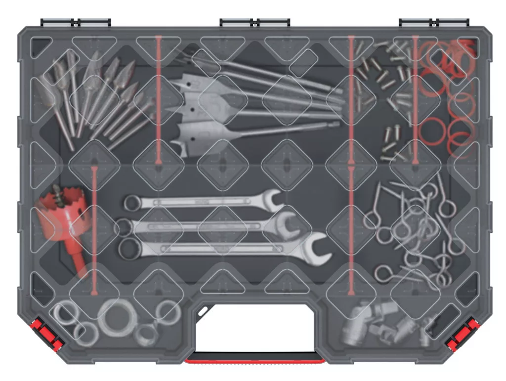 • Átlátszó fedél: Gyors áttekinthetőség és szerszámkeresés