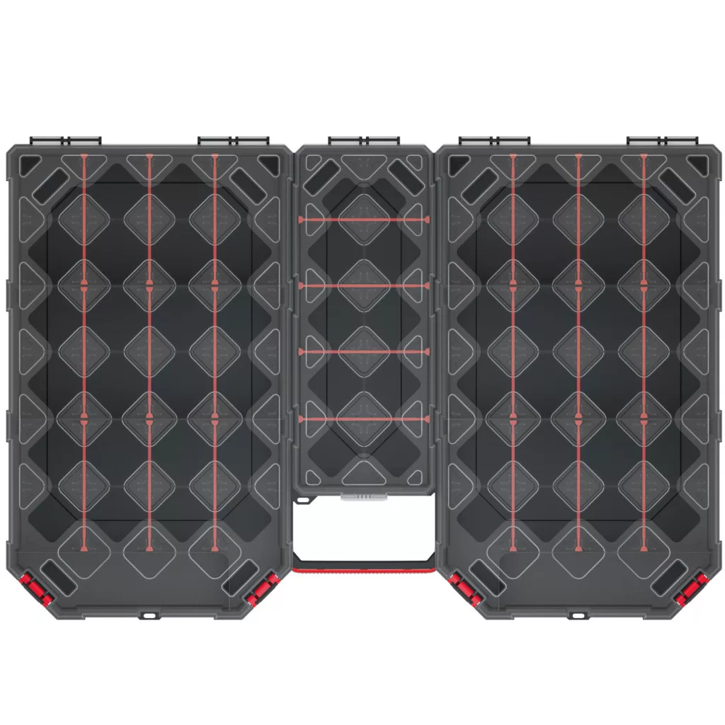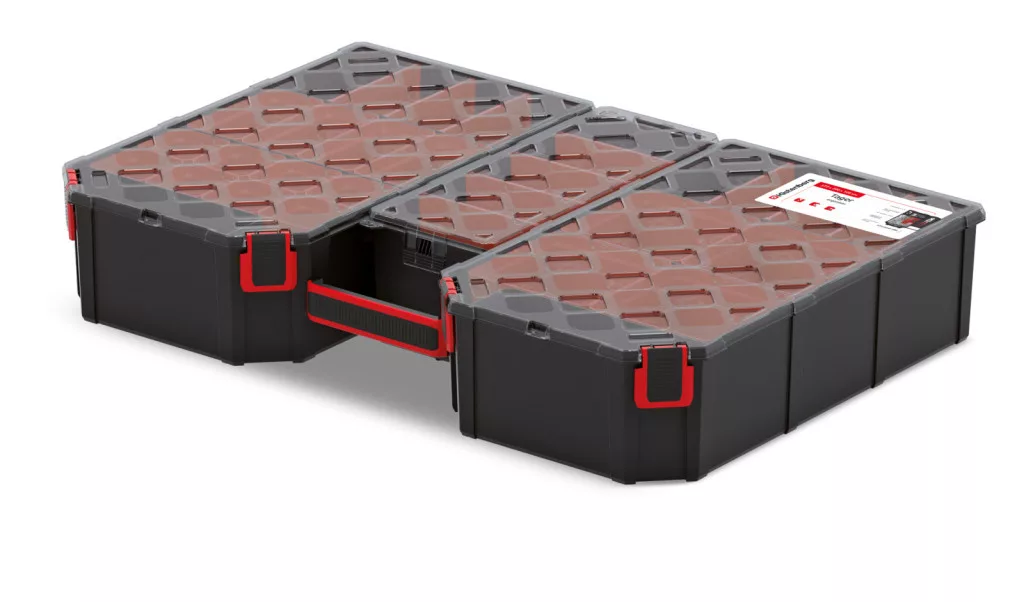 Professzionális szerszámrendező 22 kivehető rekesszel és átlátszó polipropilén fedéllel, amely tökéletes megoldást nyújt szerszámok rendszerezett tárolására.
