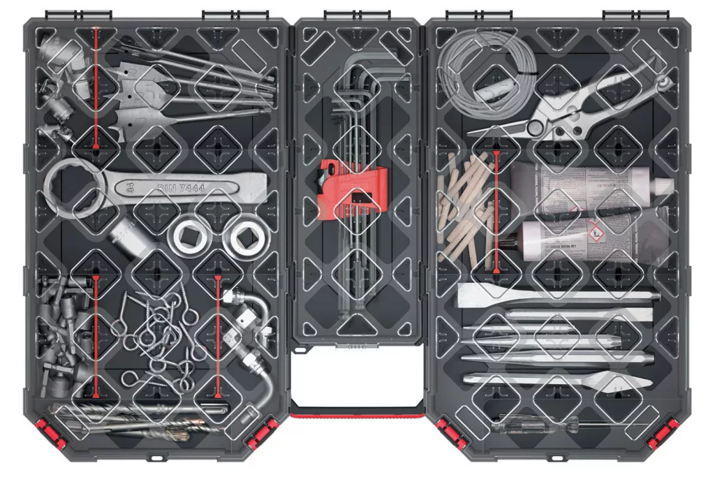 Az ergonomikus fogantyú és a megbízható zárórendszer könnyű hordozhatóságot és biztonságos tárolást garantál. A szerszámrendező átlátható kialakítása lehetővé teszi a tartalom gyors áttekintését, így időt takarít meg a munka során.
