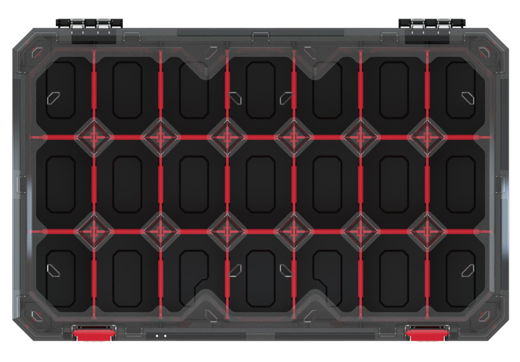 A Titan 60 szerszámrendező egyesíti a robusztus kialakítást és a praktikus funkcionalitást. A megerősített polimer házszerkezet és az ütésálló polikarbonát fedél hosszú élettartamot garantál, míg a 20 kivehető rekesz tökéletes testreszabhatóságot biztosít.