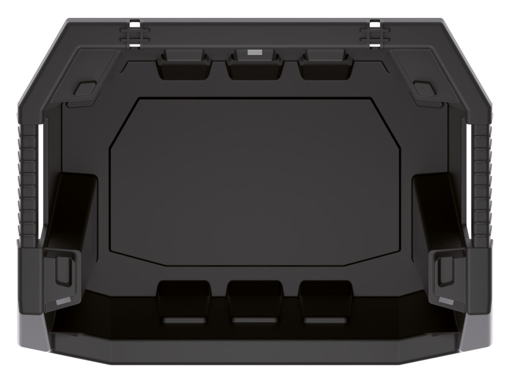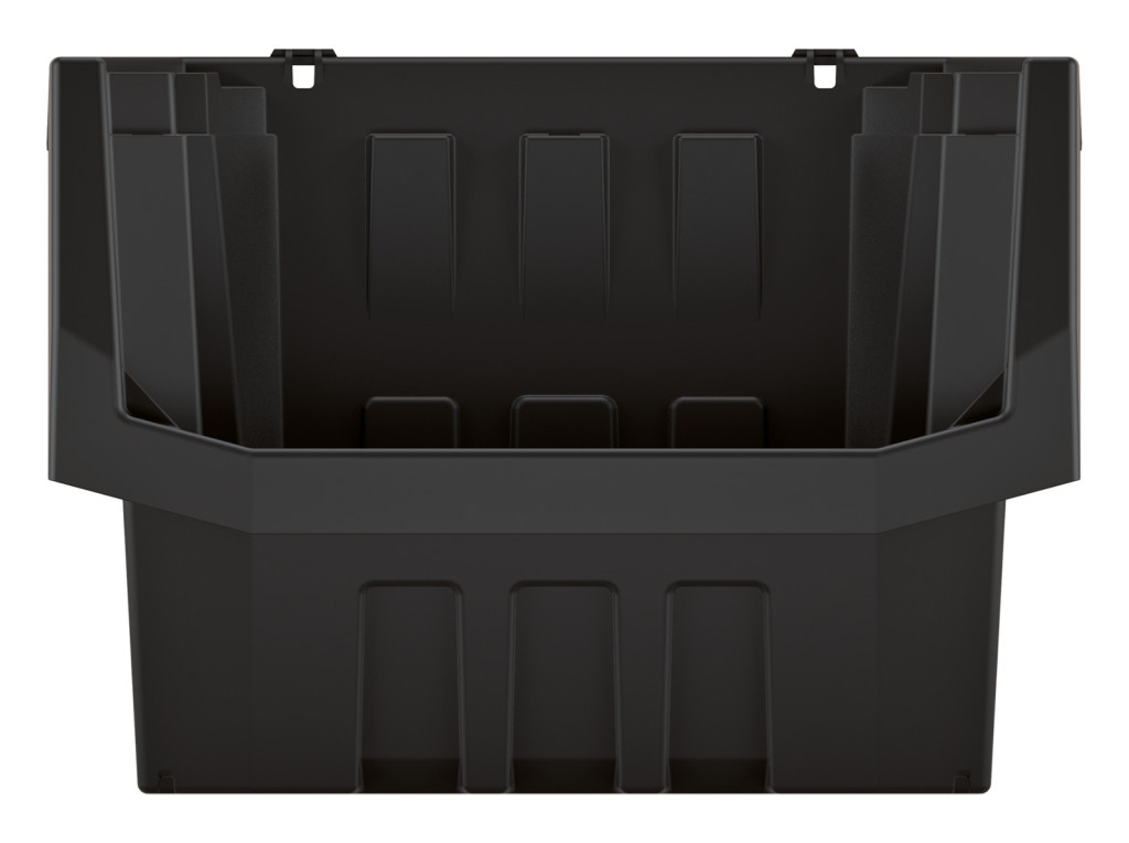 A doboz praktikus kialakítása két ergonomikus fogantyút és speciális rögzítési pontokat tartalmaz. Az átgondolt design lehetővé teszi a dobozok egymásra helyezését, így optimalizálva a tárolási területet.