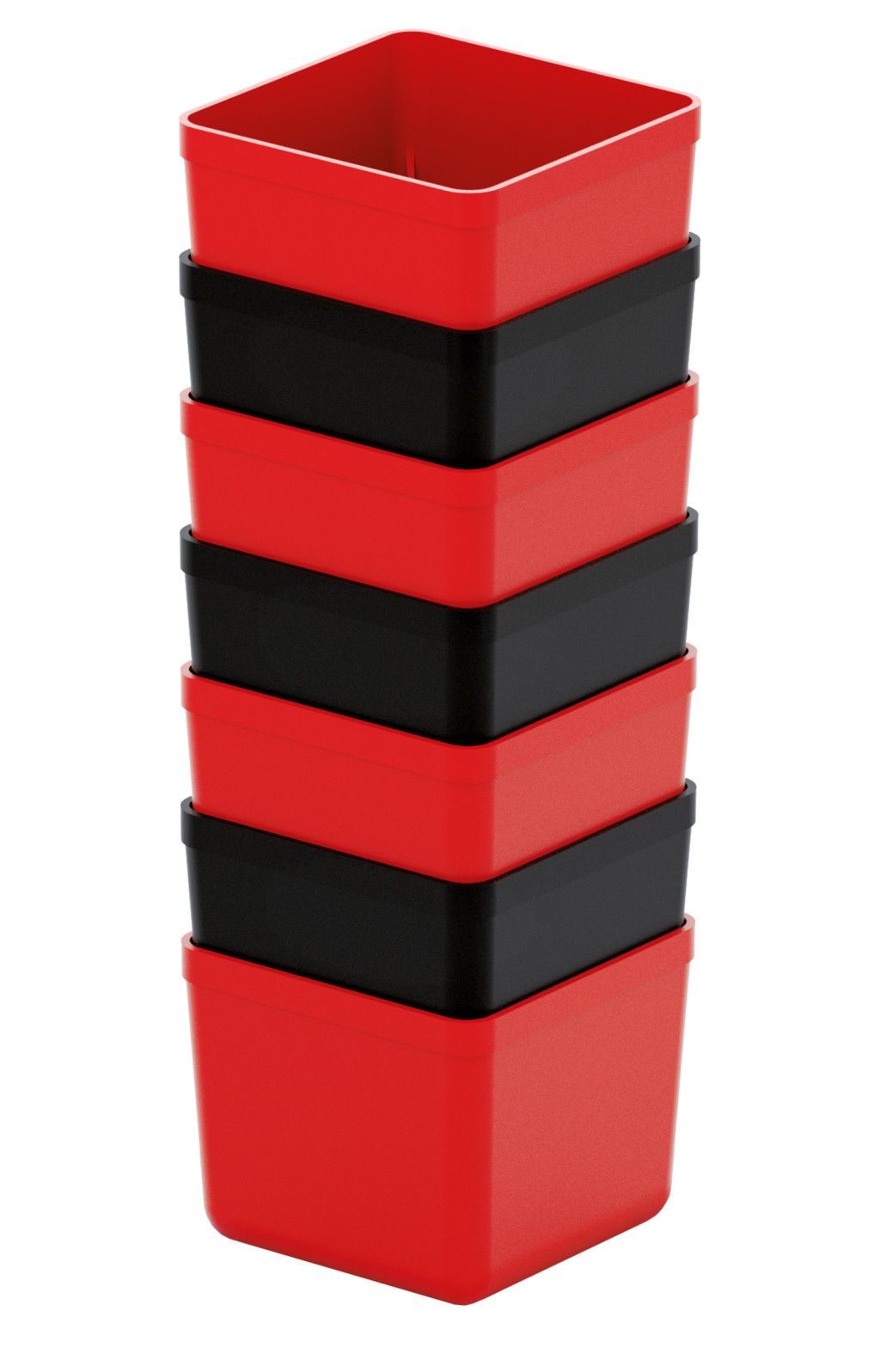 7 darabos, strapabíró műanyag tárolópohár készlet szerszámok és kötőelemek rendszerezett tárolásához, kompatibilis a legnépszerűbb szerszámtároló rendszerekkel.