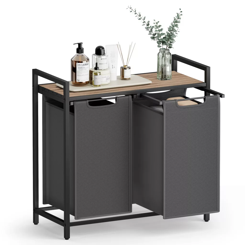 Tartsa rendben mosandó ruháit ezzel a praktikus 2 rekeszes szennyeskosárral, amely kihúzható táskákkal és extra tárolópolccal rendelkezik a mosószerek számára.