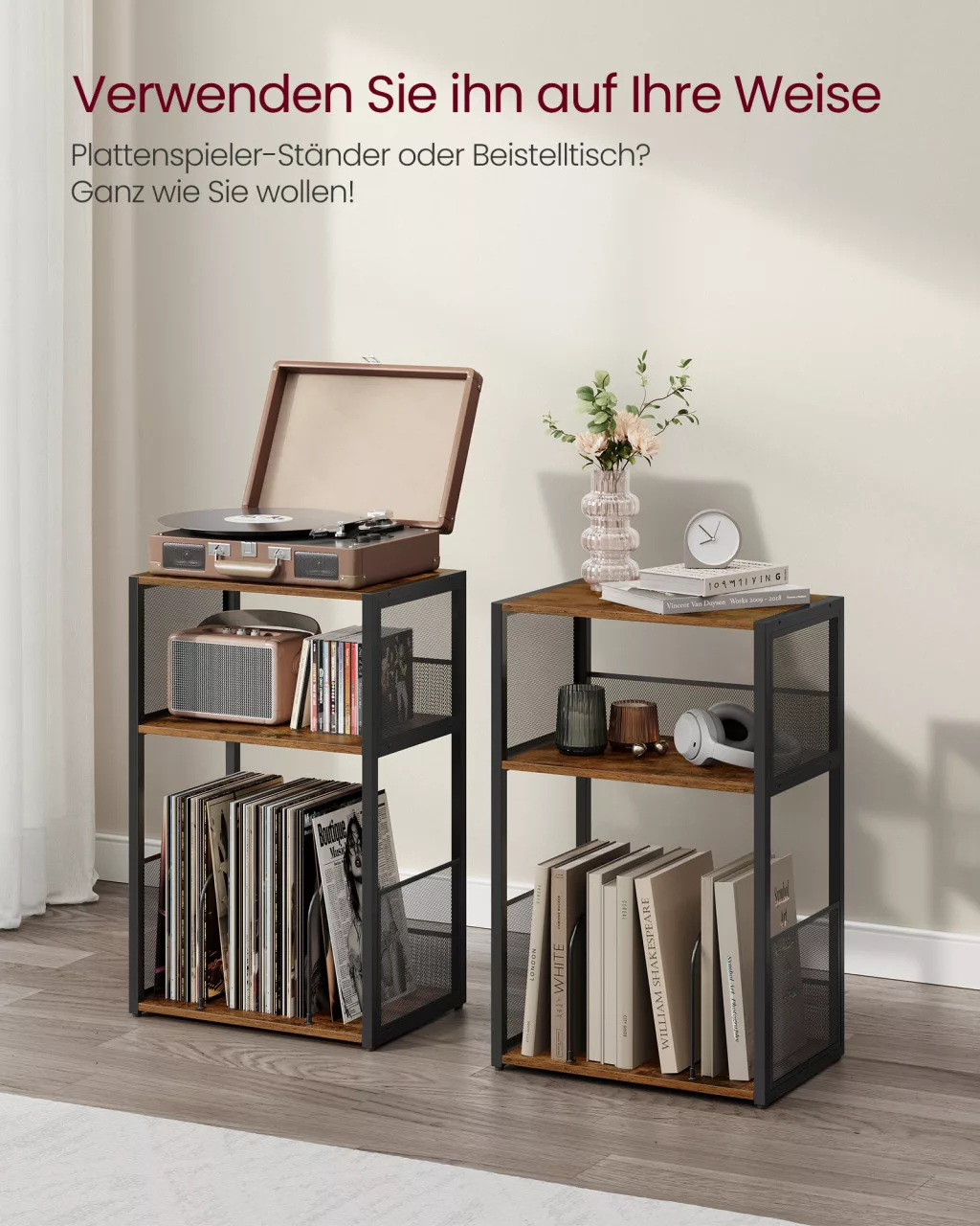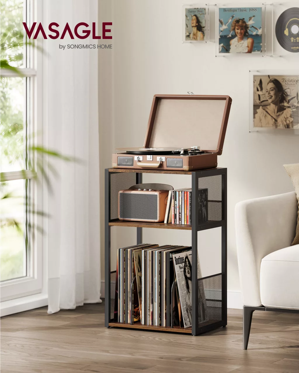 VASAGLE 3-szintes Lemezjátszó Állvány Rusztikus Barna