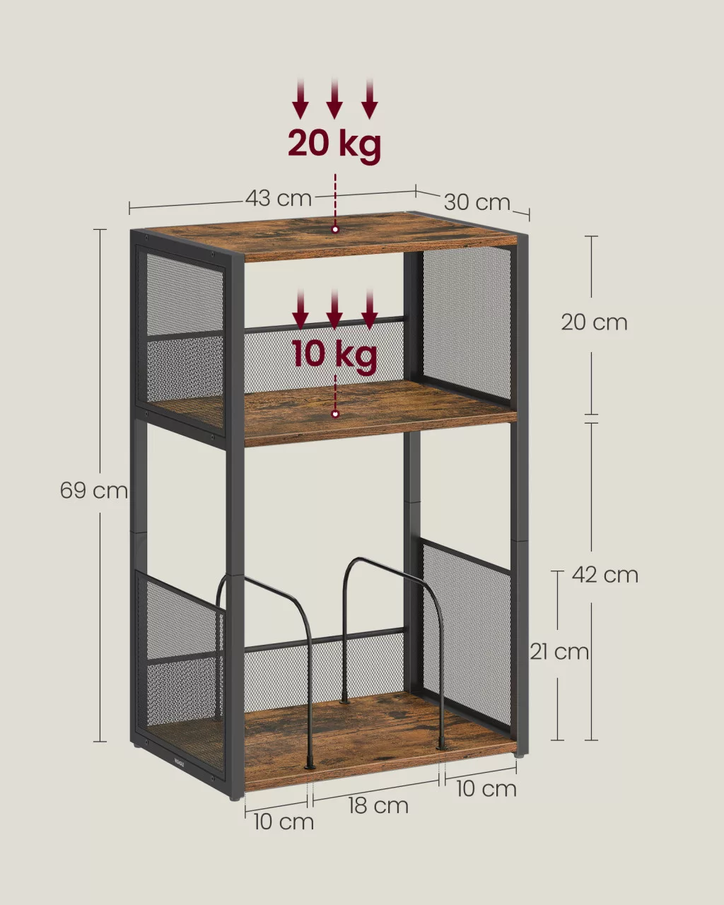 • Strapabíró konstrukció: A minőségi forgácslap és acél váz kombinációja hosszú élettartamot és stabilitást garantál, akár 20 kg terhelhetőséggel a felső lapon