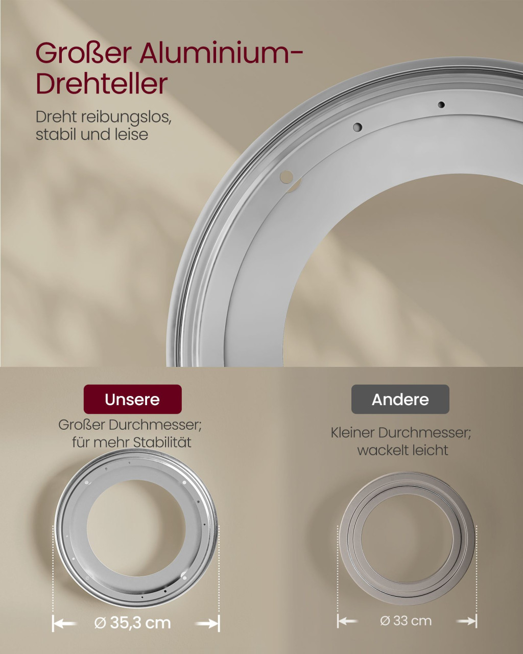• Nagyméretű alumínium forgótányér: Stabil és halk működést garantál