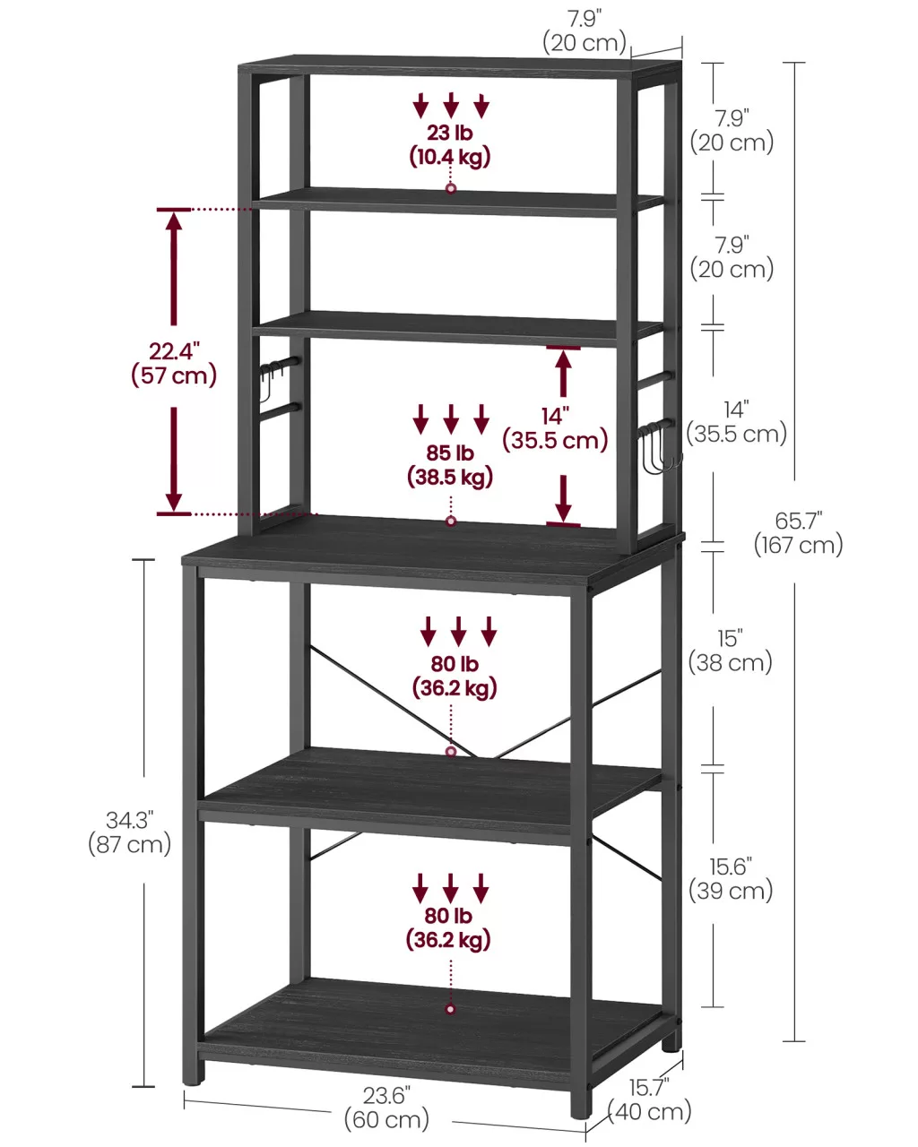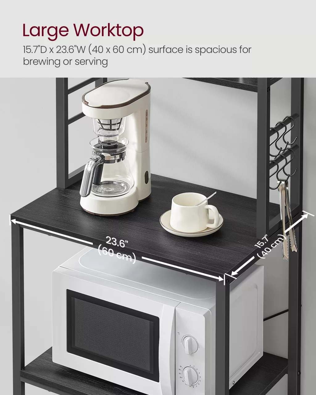 Maximalizálja konyhai tárhelyét ezzel a sokoldalú 6-szintes állvánnyal, amely mikrohullámú sütőt, kávéfőzőt és minden konyhai eszközt elegánsan tárol, miközben helyet takarít meg a munkafelületen.