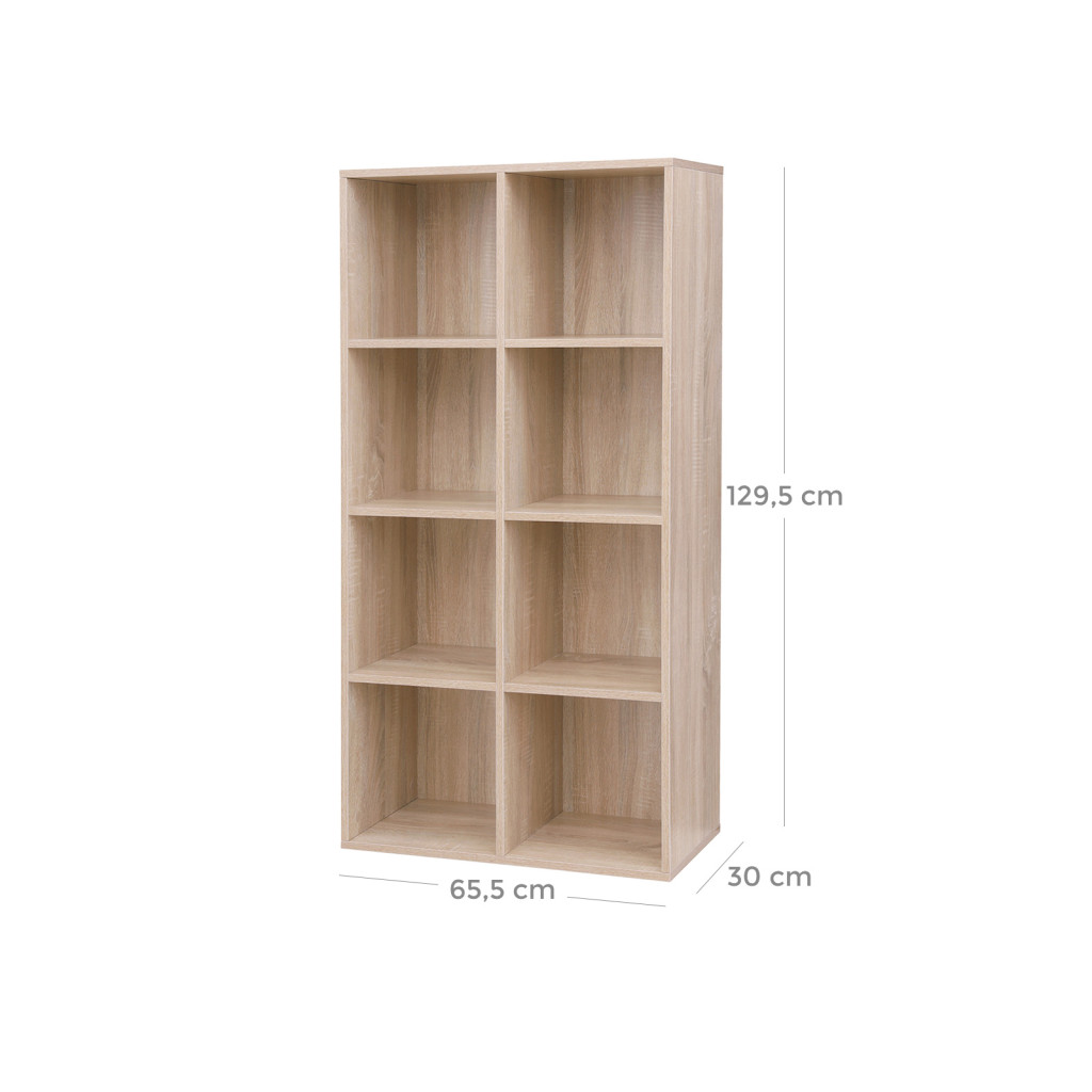 VASAGLE 8-Rekeszes Tölgy Könyvespolc Tárolórendszer