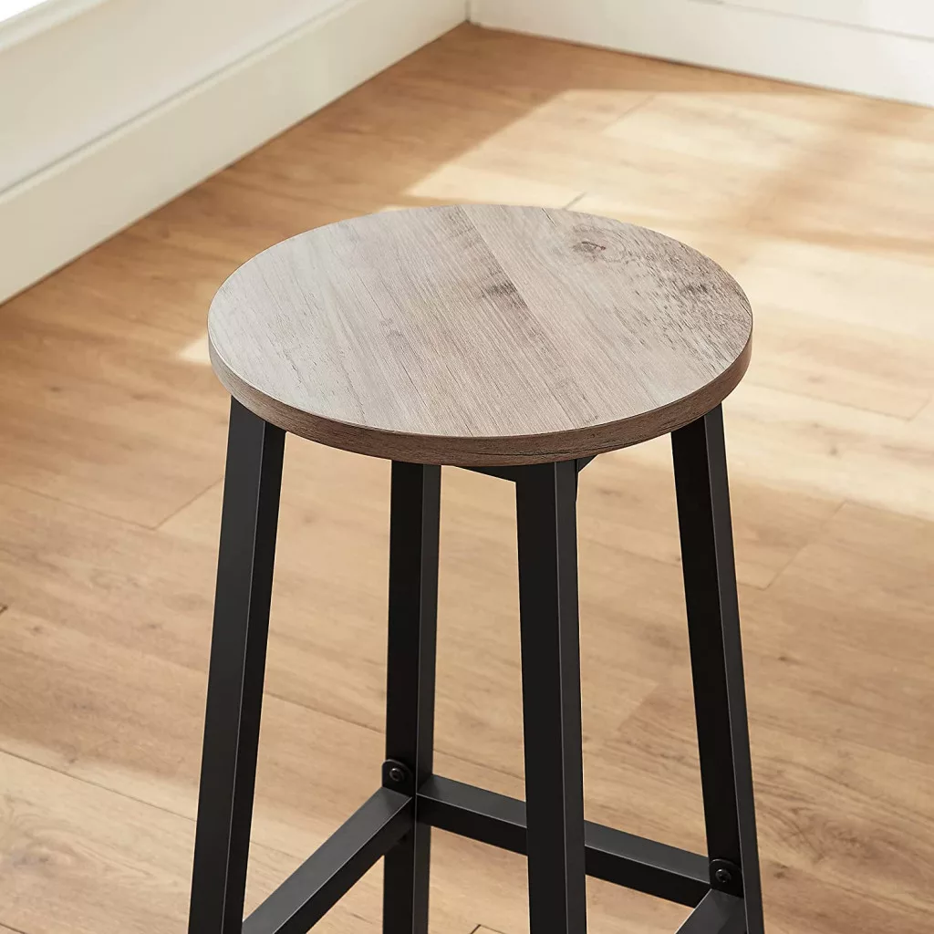 VASAGLE ALINRU Ipari Stílusú Bárszék Szett Kerek Ülőfelülettel Szürke-Fekete