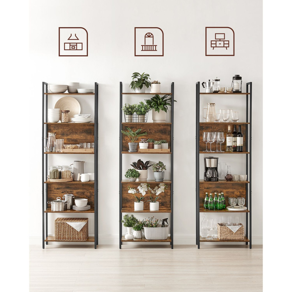 VASAGLE ALINRU Ipari Stílusú Könyvespolc Acélvázas 6 Polcos Rusztikus Barna-Fekete