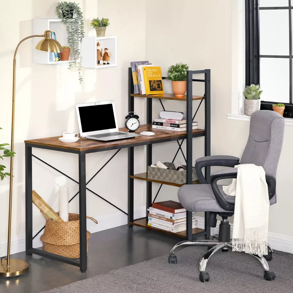 Ez a VASAGLE számítógépasztal ötvözi a praktikus kialakítást az ipari dizájnnal. A 120 cm széles munkafelület bőséges helyet biztosít a számítógépnek és egyéb irodai eszközöknek, míg a három beépített polc lehetővé teszi dokumentumok és kellékek rendszerezett tárolását.