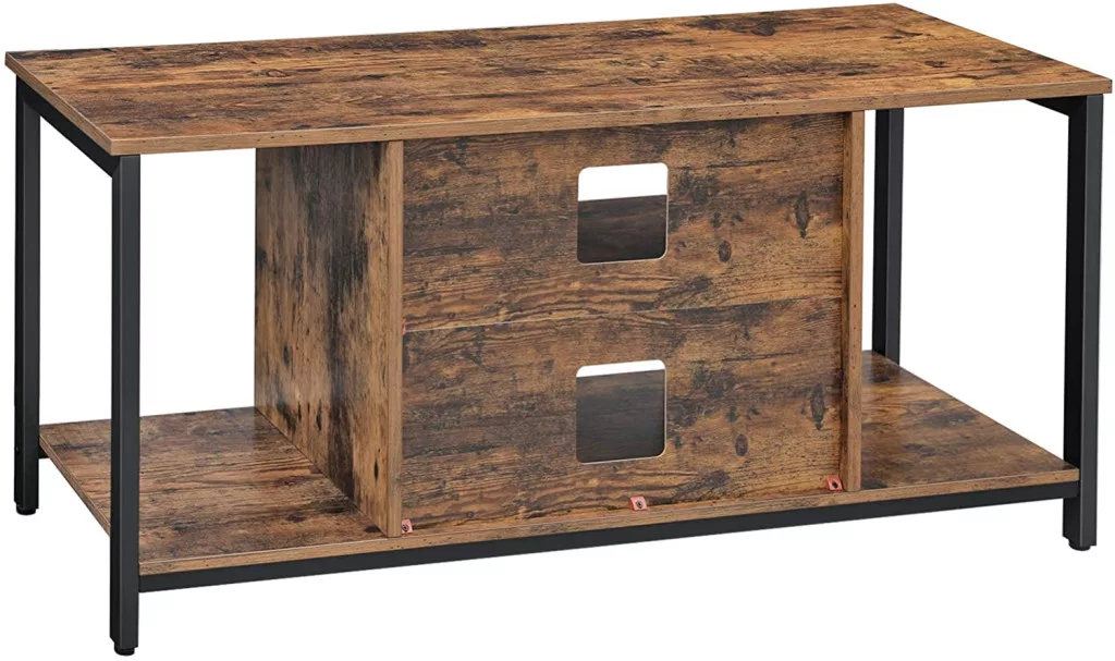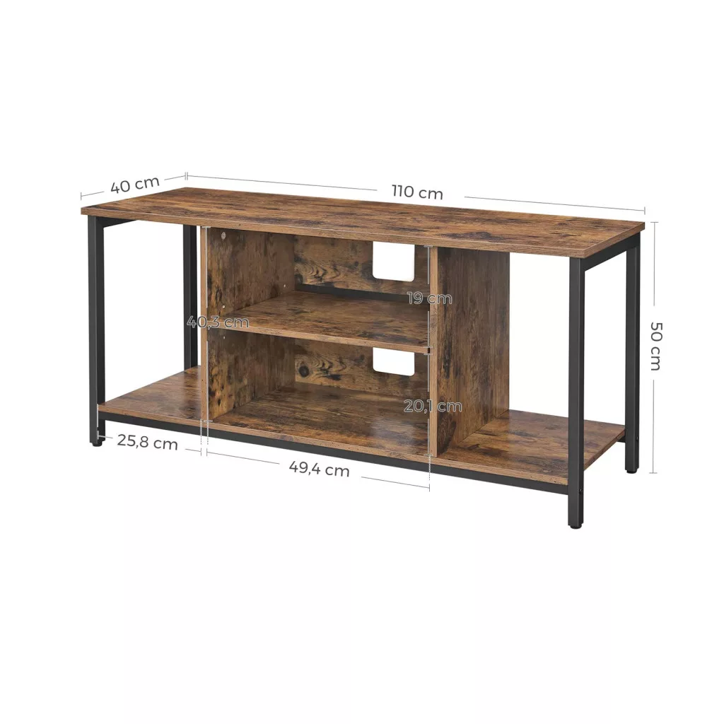 Ez a VASAGLE TV állvány az ipari és modern design tökéletes találkozása. A rusztikus barna felület és a fekete fém váz harmonikus kombinációja bármilyen lakberendezési stílushoz illeszkedik. A tágas felső lap biztonságosan megtartja akár az 50 colos TV-készüléket is.
