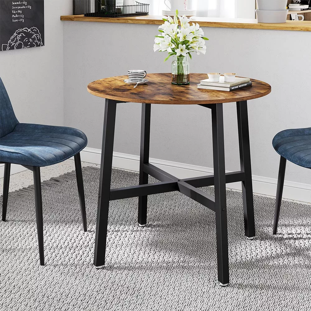 VASAGLE ALINRU Kerek Étkezőasztal Ipari Stílusú Rusztikus Barna-Fekete