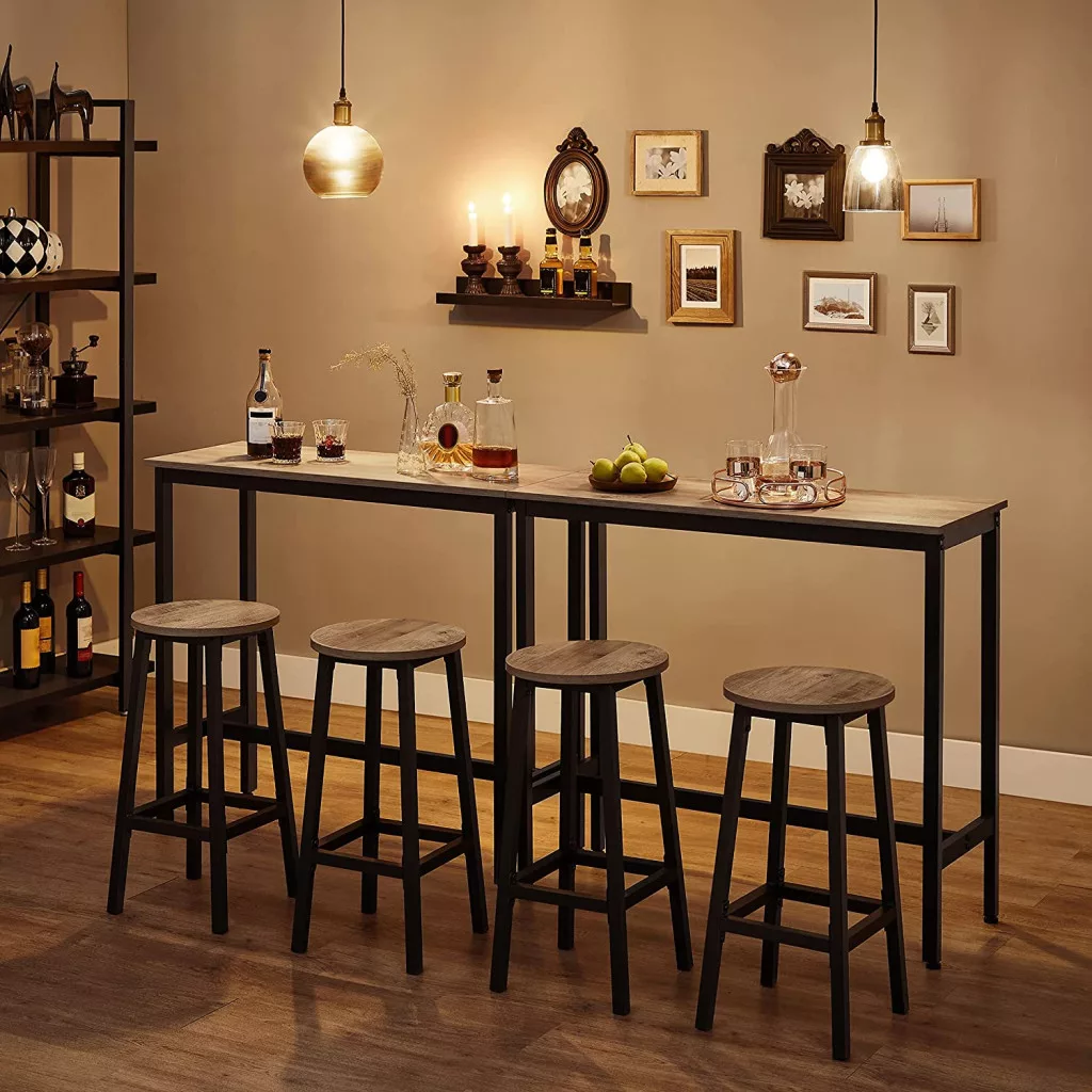 VASAGLE ALINRU Keskeny Bárasztal Ipari Stílusú Acélvázzal Greige-Fekete